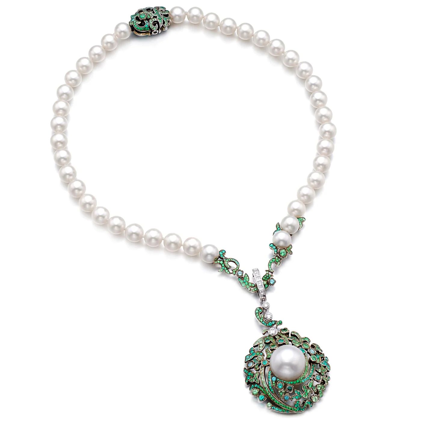 Chanel Pearl Paraiba Tourmaline Diamond 18k White Gold Pendant Necklace PRICE: $93,750.00 This elegant Chanel pearl necklace is a stunning display of intricate craftsmanship and extraordinary attention to detail. At the center of the piece is an alluring jardin motif, a captivating ode to the enchanting mysteries of nature, adorned with a breathtaking array of round diamonds. These precious stones are complemented beautifully by vibrant Paraiba tourmalines and tsavorite garnets, whose colors dance and dazzle at every angle, offering a mesmerizing canvas of glittering greens and blues. Adding to the sophistication, the bail of the pendant is accentuated by meticulously set square cut diamonds, which catch and refract the light in a symphony of sparkle. This brings attention not just to the mesmerizing jardin centerpiece, but also to the expanse of lustrous pearls that cascade around the wearer's neck. Each pearl is carefully selected for its luminescent sheen, uniformity and size, contributing to the harmonious aesthetic of the piece. This Chanel masterpiece reflects a similar openwork pattern to the jardin motif, resonating with the theme and adding an additional touch of charm and elegance. The necklace is not just an ornament, but a testament to the Chanel's unwavering commitment to beauty, style, and high-quality craftsmanship. This stunning piece transforms the classic pearl necklace into a work of wearable art, a brilliant blend of timeless elegance and contemporary design that makes it a perfect addition to any sophisticated jewelry collection. Chanel Circa 2011/12 DETAILS SKU 0003422 Brand Chanel Condition Pre-owned Color White Material White Gold Hallmarks Chanel, 750, Serial Accessories Our Gift Box ——— Opulent Jewelers 108 E Pennsylvania Blvd, Feasterville-Trevose, PA 19053, United States