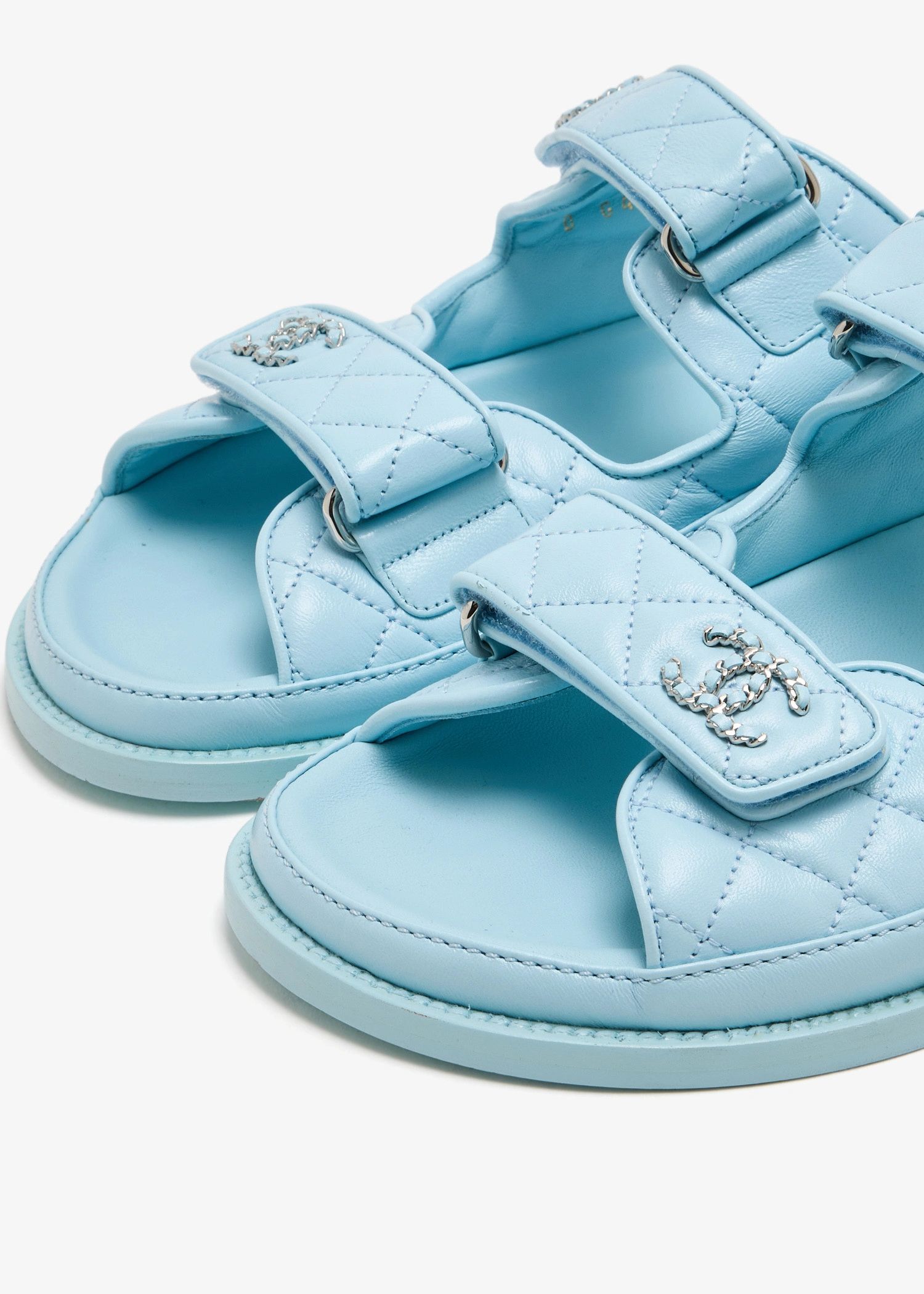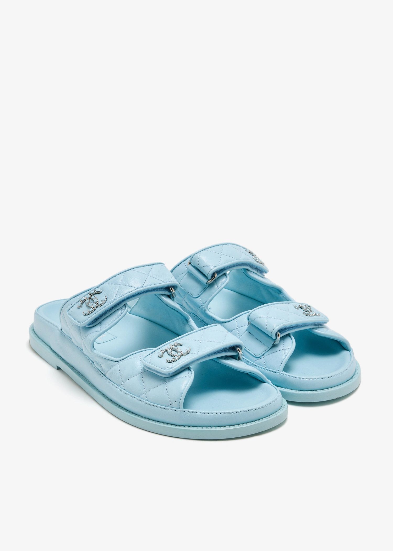 These preloved Chanel Dad Sandals are a stylish and comfortable wardrobe essential, crafted in quilted lambskin leather with iconic CC chain detailing. Adjustable Velcro straps and a cushioned sole ensure all-day ease, offering a perfect blend of luxury and practicality for collectors and fashion enthusiasts alike.
