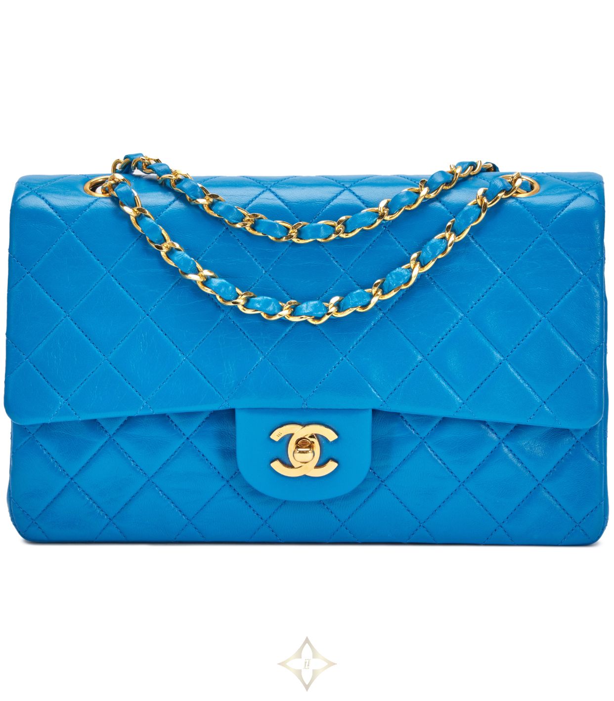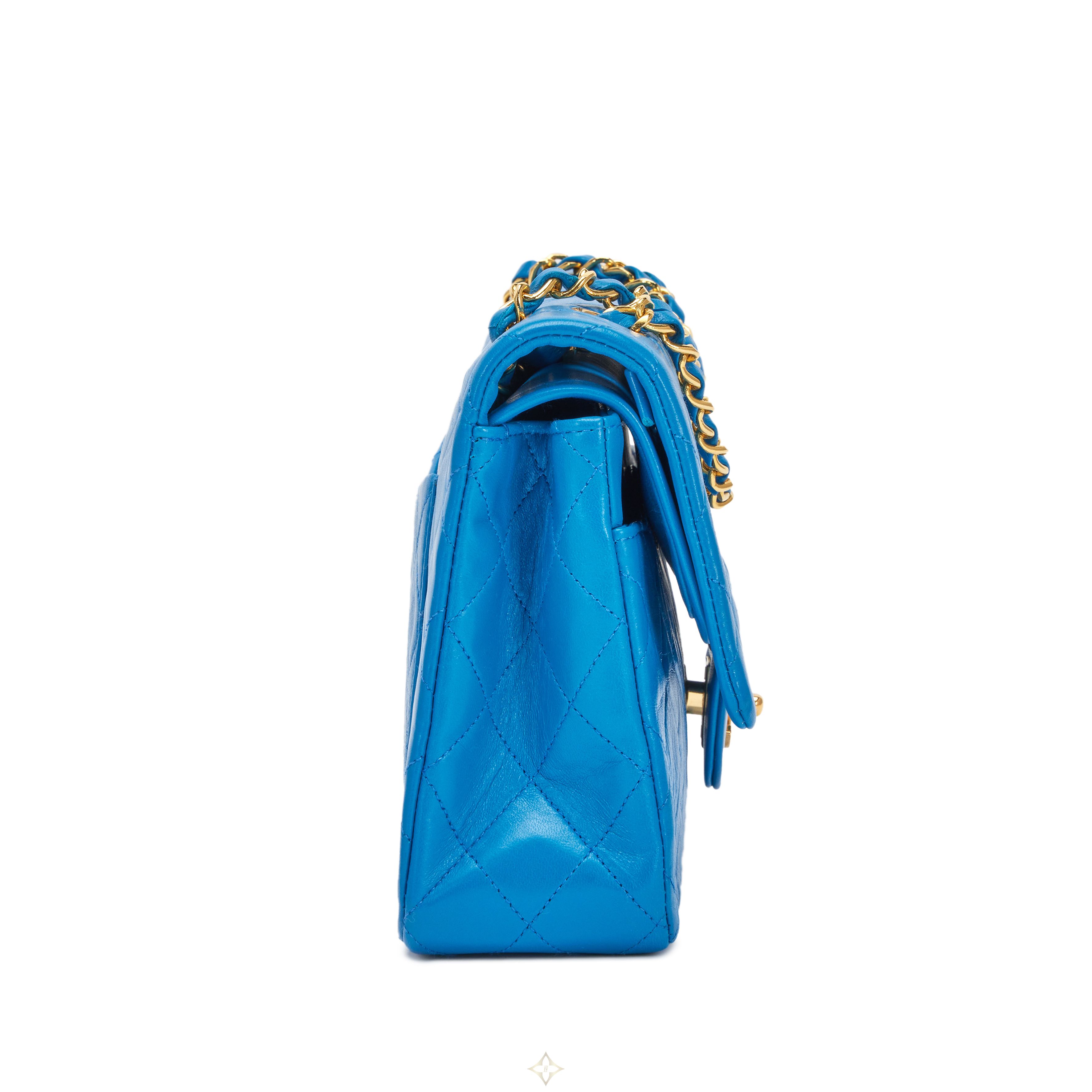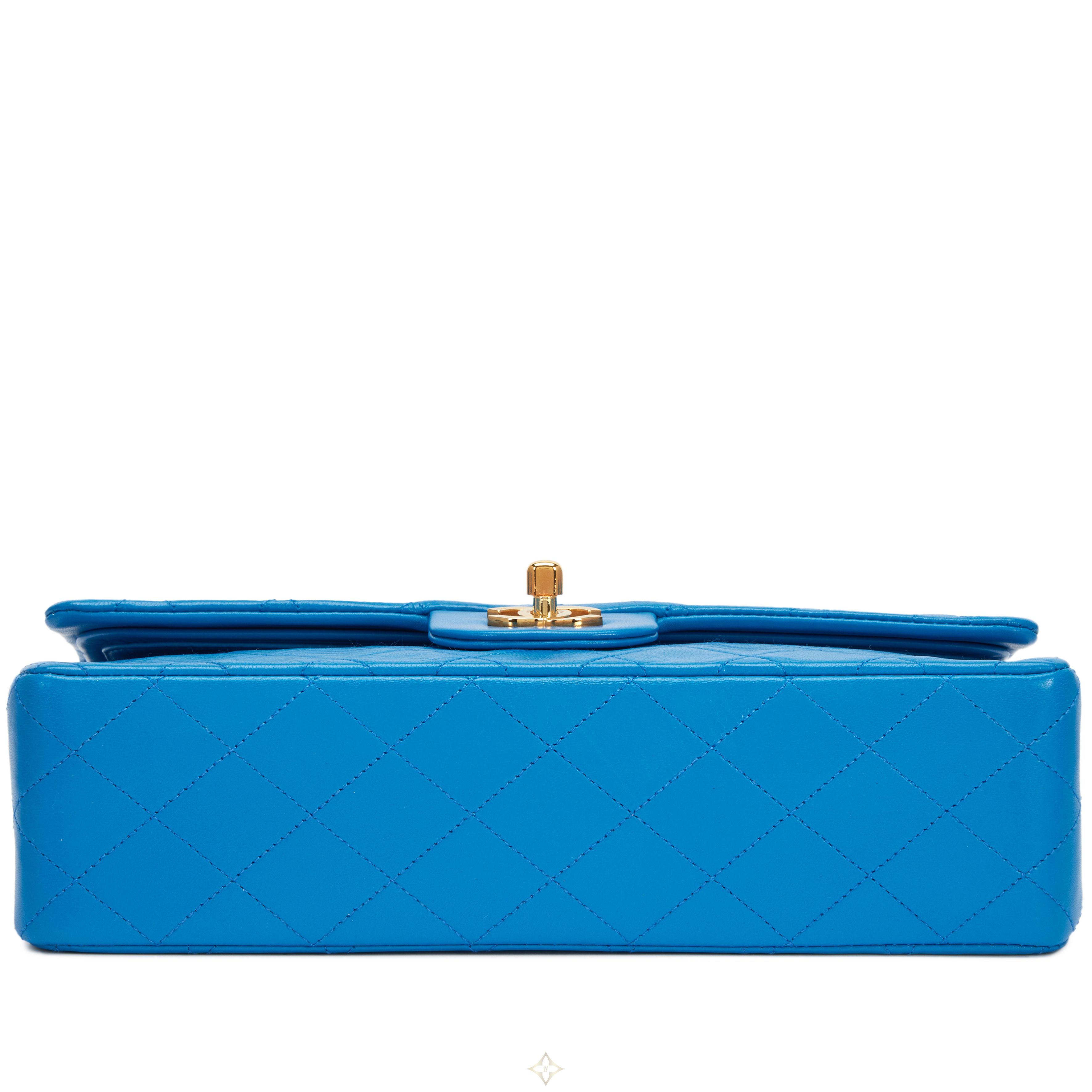Vintage Bright Royal Blue Quilted Lambskin Classic Medium Double Flap Bag Gold Hardware, 1989-1991