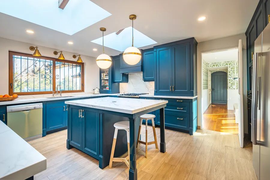 The entrance hall has a separate living and dining room with access to a large terrace with a built-in barbecue area, a spectacular kitchen with a central island, neolith counters, a large daily dining room, a laundry room, and staff quarters.