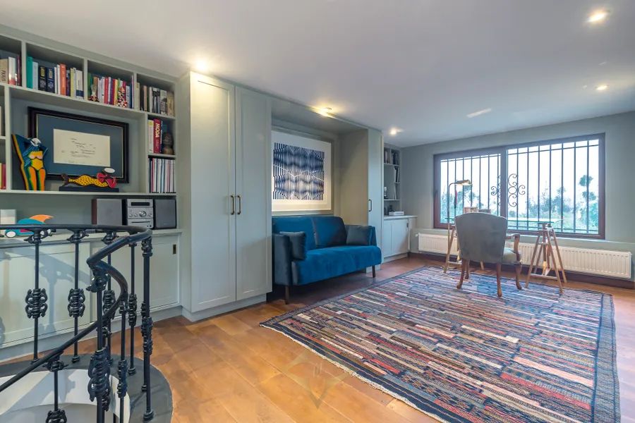 The Master bedroom en suite has a built-in sitting area, plus a private second-floor work area accessed only from the bedroom.