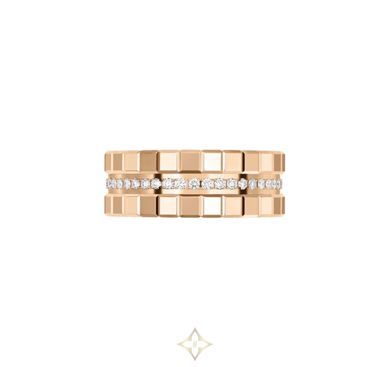 Since its launch in 1999, the Ice Cube collection has offered successive interpretations of its modern aesthetics inspired by tiny ice cubes. Symbolizing perfection and miraculous geometry, the cube is a source of inspiration in all creative fields. By selecting this figure, the Ice Cube collection dares to play on its rare nature, its disruptive aesthetics, as well as on the endless sparkling flashes of light reflected by its many facets. Minimalist Elegance