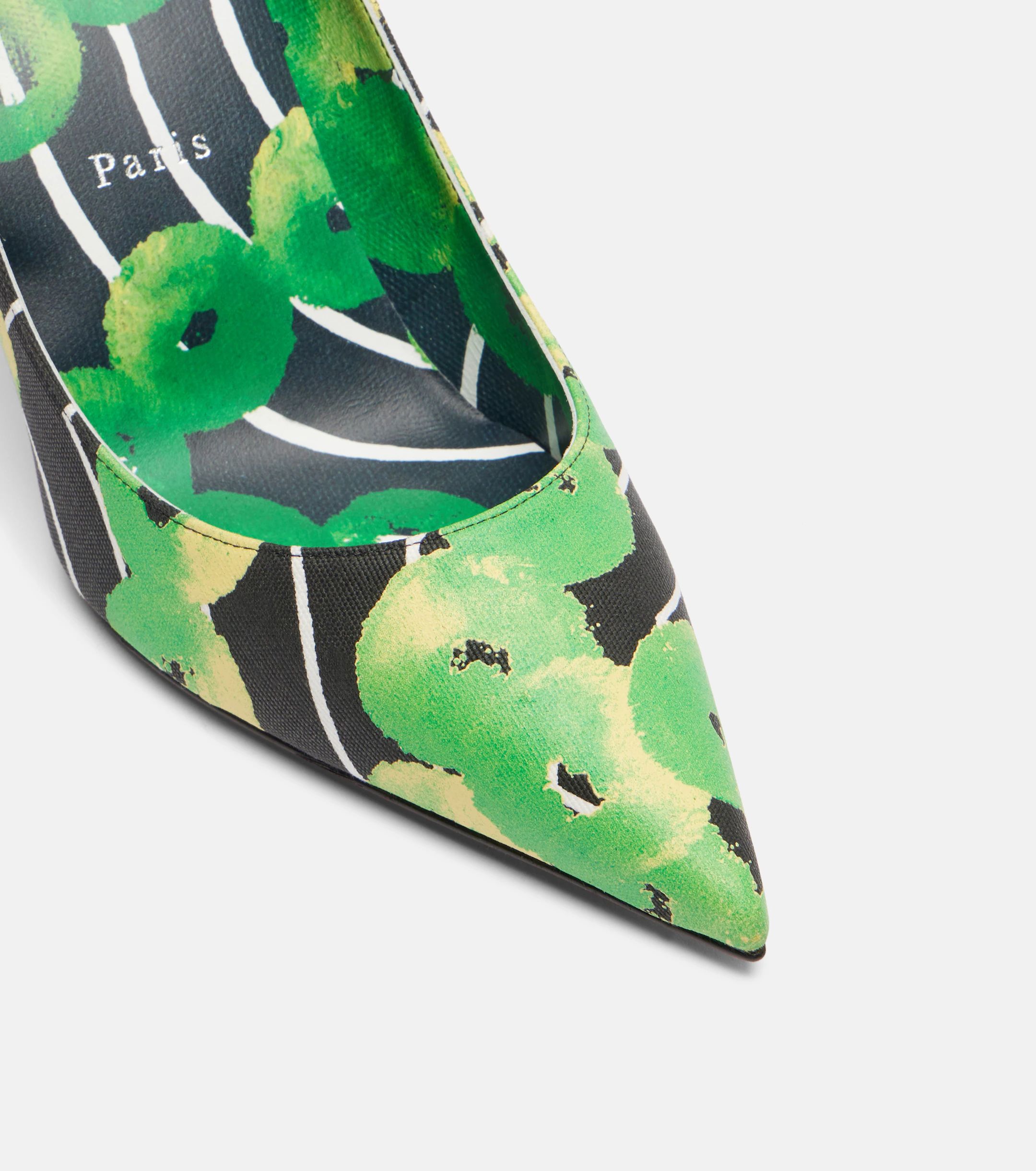 The Miss Z mules from Christian Louboutin are crafted from satin with a vibrant tropical print and set atop stiletto heels. Thanks to a signature coating technique, the Everlasting Red soles promise vibrancy that won't fade over time.
