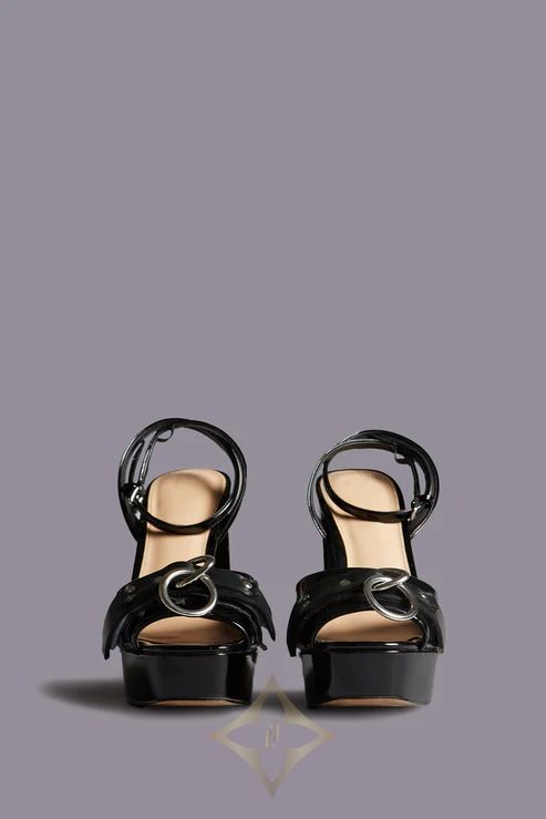 Chunky platform heels featuring R13's signature ringed harness at the front and a dual-strap closure.