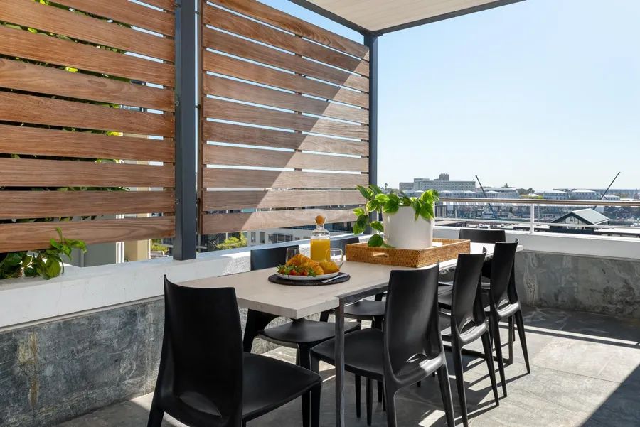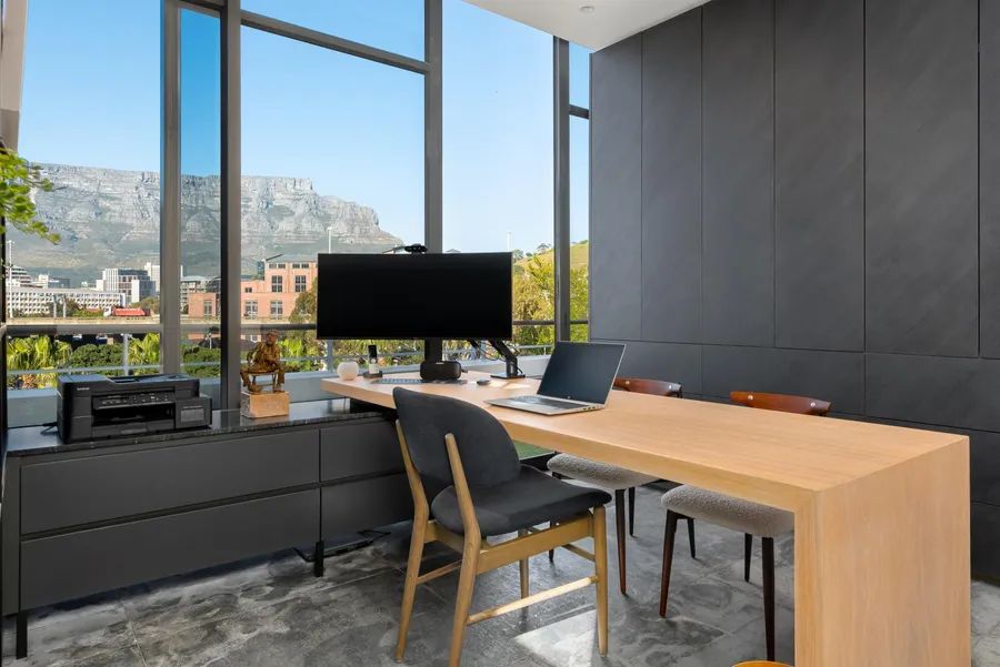 The penthouse offers unparalleled views of the glittering Waterfront Marina and the city skyline including itΓÇÖs most celebrated landmark, Table Mountain.