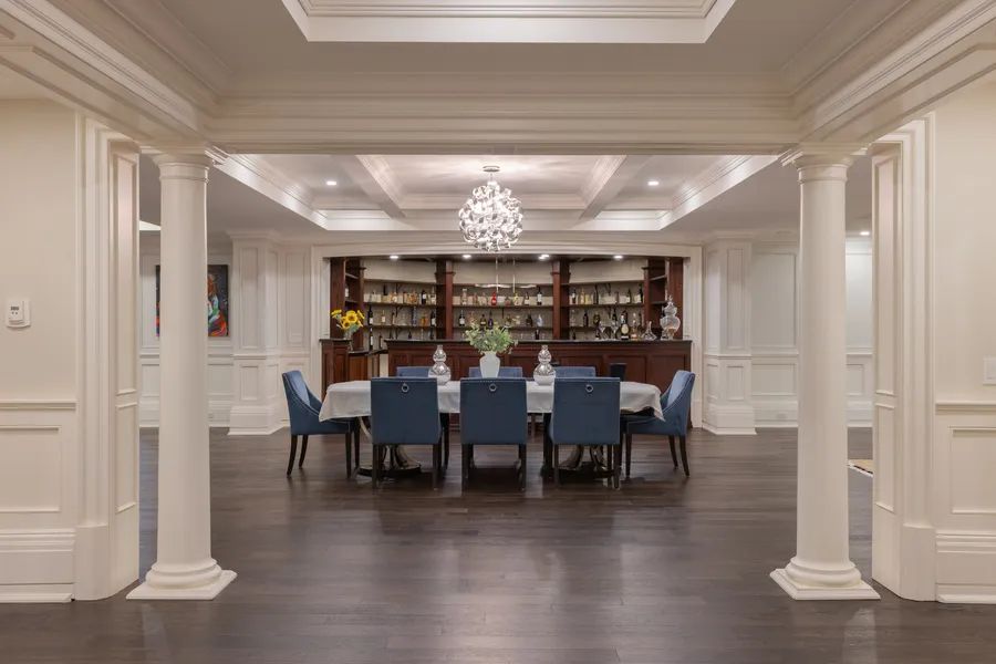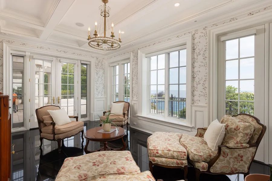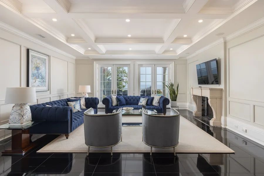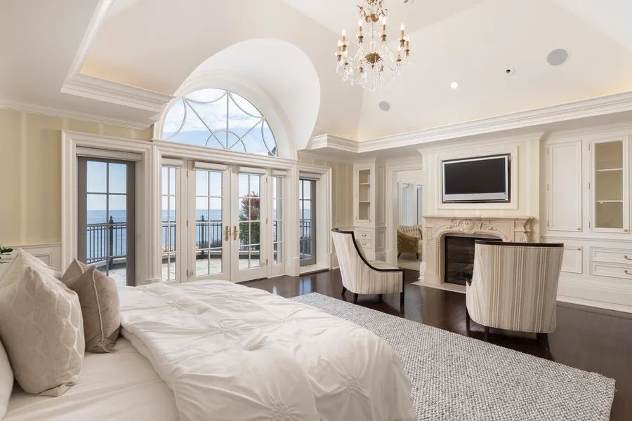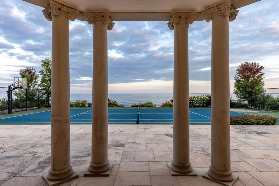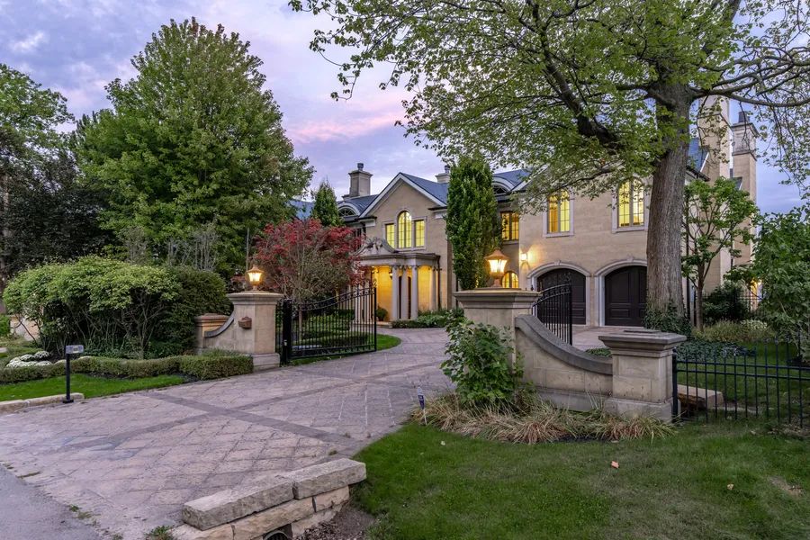 Commanding a prized stretch of Lake Ontario shoreline in prestigious South East Oakville, this Hicks-Pettes designed estate defines European elegance and modern grandeur. A limestone facade with stone pillars, slate roof and copper detailing signal architectural pedigree of the highest order. Behind the gated, heated circular drive and stately covered porch, more than 14,000 square feet. of elevator-served luxury unfolds. From the moment you enter, panoramic lake vistas sweep across every principal room, creating an unforgettable backdrop for both intimate family life and grand entertaining. Radiant-heated marble floors and a soaring 22-foot illuminated barrel ceiling set a tone of sophisticated drama. Formal living and entertaining salons, each with hand-carved stone fireplaces, open to expansive lake-view terraces, while the sun-filled solarium captures year-round vistas of the tennis court and shimmering water beyond. A chefs kitchen with separate caterers prep area balances everyday ease with gala-scale hosting. Completing the main level, a richly paneled library provides a quiet, distinguished retreat for work or reflection. Five lavish bedroom suites each with private ensuite include a primary sanctuary with spa-inspired bath and private lake-view balcony. The lower level becomes a private club: temperature-controlled wine cellar and bar, theatre, banquet hall, gym, nanny suite and second laundry. Outdoors, French-inspired gardens, sound-equipped terraces and a full tennis court embrace the lakes breezes and golden sunsets. This is Oakville’s ultimate lakefront legacy residence where unrivalled, world-class vistas from every principal room meet architectural mastery and resort-style amenities to create a property of true international calibre.