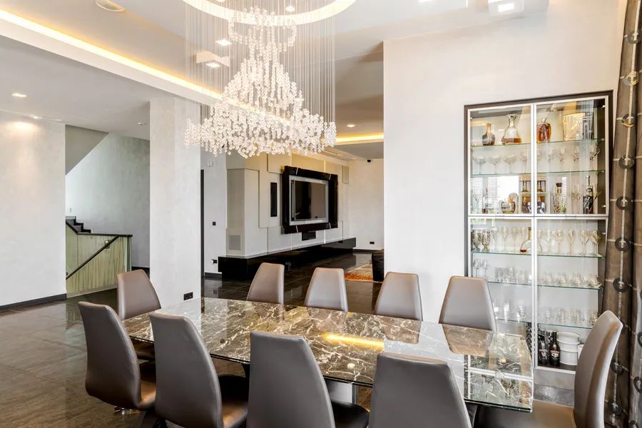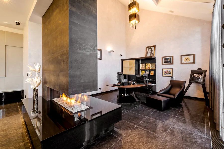 The home unfolds across light-filled interiors where Italian-designed furnishings and Swarovski chandeliers create a setting of understated luxury. Every room is enhanced by floor heating and a fully integrated smart home system, with electric central heating and cooling, automated shutters, and comprehensive security features including cameras and alarm. The villa is offered fully furnished, ensuring an effortless transition into this unparalleled lifestyle.