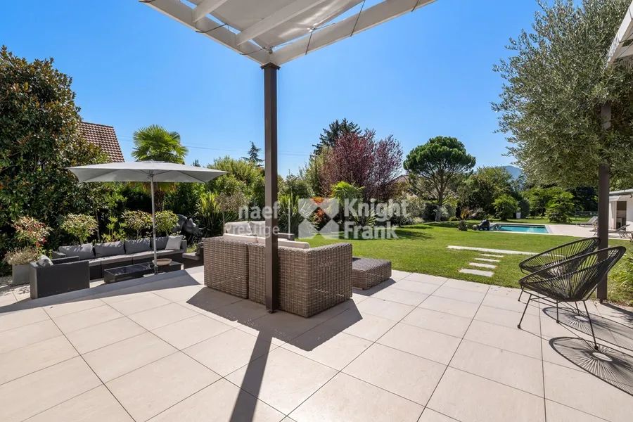 Located in Presinge, in the heart of the Geneva countryside, this superb architectural villa with a contemporary style offers about 260 m² of living space and 350 m² of useful area, on a generous plot of about 2'285.75 m². It offers an exceptional living environment, combining calm, comfort and refinement.