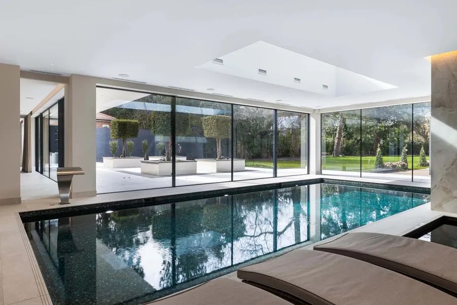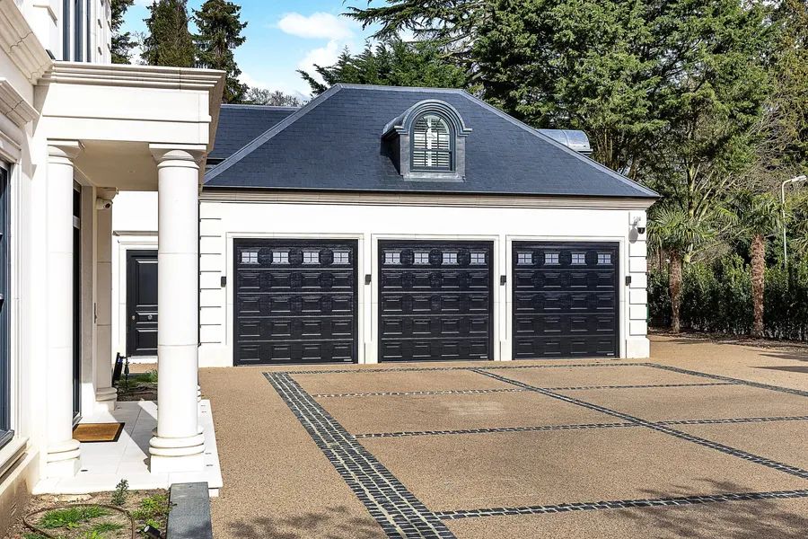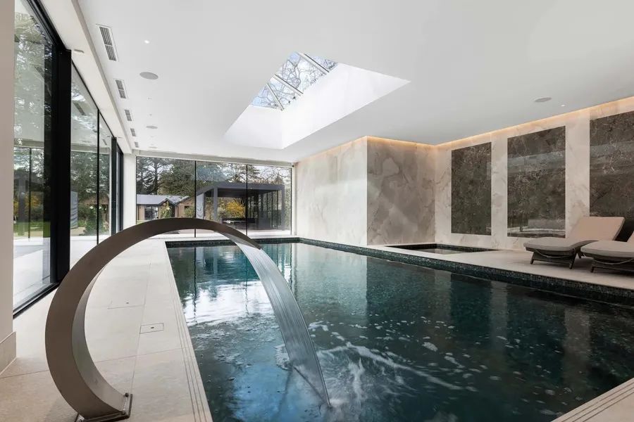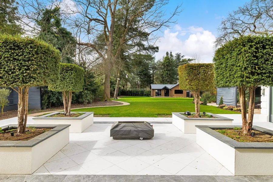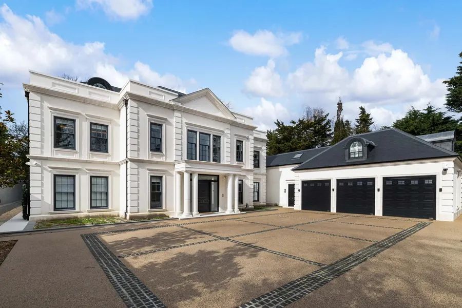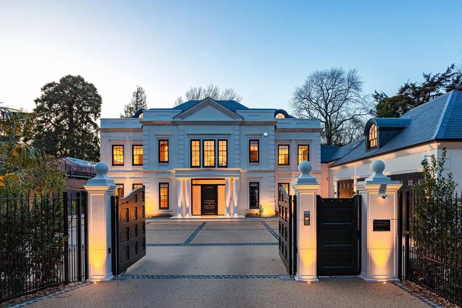Elegance, perfection and boutique are the simplest words to describe this new build commissioned by the current owner to their specific requirements. No expense was spared in the making of this fine residence in probably the best private road within the heart of the Coombe Estate, shared by only 10 other residences. This fabulous home situated in fully irrigated landscaped grounds of approximately 0.66 of an acre with high security around the perimeter of the property offers a gross internal area of 1,008m2 (10,850ft2) plus an additional area of 55.4m2(596ft2) for the outdoor gym complex. The gated forecourt can accommodate at least 8 cars in addition to the triple garage block. The whole house has been interior designed by a multi award winning designer including the interior architecture, Samantha Bartlett. With a luxurious well-planned study separate from the whole living space, a well-appointed reception hall with its sweeping galleried stairwell, walk in boot room and passenger lift that serves all three floors, to the well thought out family, dining and kitchen that encompasses the whole garden, the house exudes luxury. There is in addition another TV/home cinema, second dirty kitchen, indoor swimming pool complex with jacuzzi, shower room a further cloakroom and back of house laundry room, secondary stairs, games room and living in accommodation. The principal bedroom spans the entire rear width with a large boutique en suite bathroom, bedroom with doors onto a balcony, and two well appointed dressing rooms. With coffered ceilings housing the AC vents and LED soft lighting, this is the perfect suite for quite relaxation at the end of a busy day. Also on this level are two further suites, with a further three suites to the second floor and a hobby room. The property has been constructed using very high materials and has been designed to maximise natural heat energy from 54 solar panels, to storing overnight energy in the TESLA batteries situated in the garage to so much more technology invested in the making of this wonderful family home.