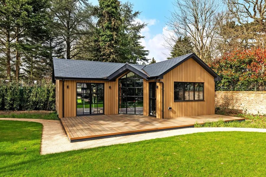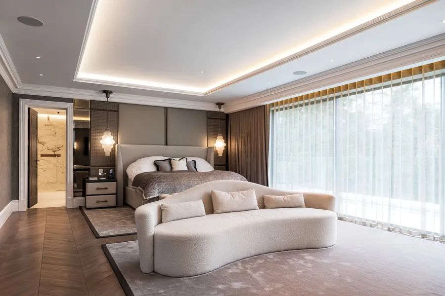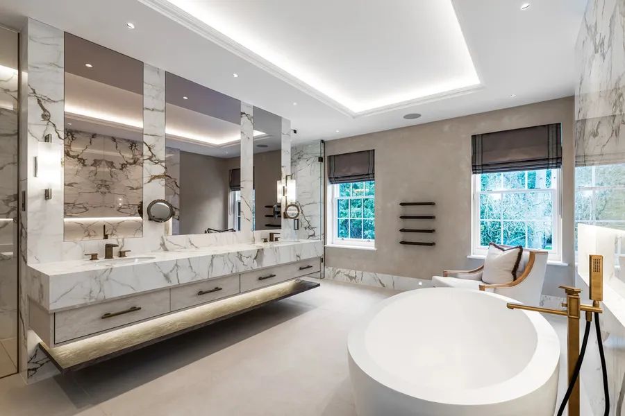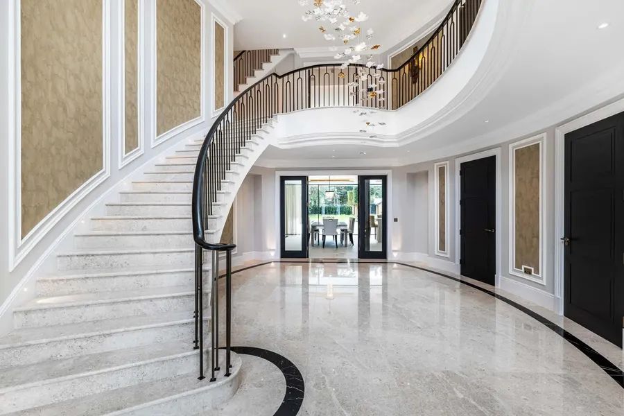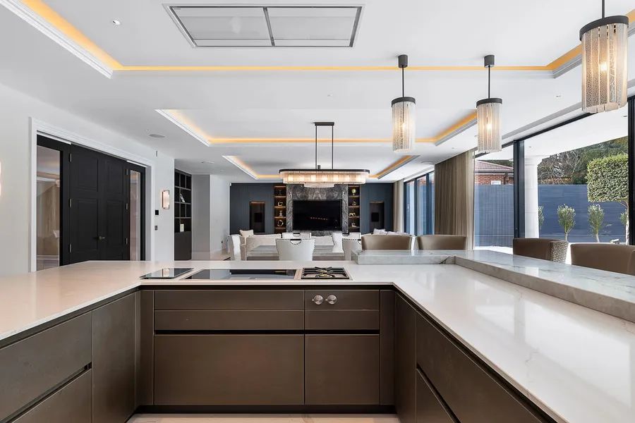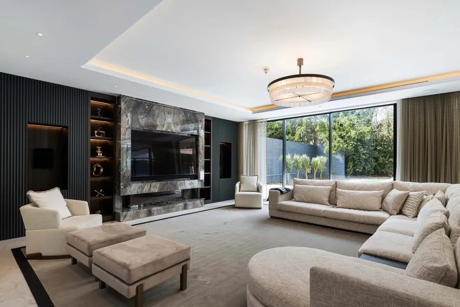 Elegance, perfection and boutique are the simplest words to describe this new build commissioned by the current owner to their specific requirements. No expense was spared in the making of this fine residence in probably the best private road within the heart of the Coombe Estate, shared by only 10 other residences. This fabulous home situated in fully irrigated landscaped grounds of approximately 0.66 of an acre with high security around the perimeter of the property offers a gross internal area of 1,008m2 (10,850ft2) plus an additional area of 55.4m2(596ft2) for the outdoor gym complex. The gated forecourt can accommodate at least 8 cars in addition to the triple garage block. The whole house has been interior designed by a multi award winning designer including the interior architecture, Samantha Bartlett. With a luxurious well-planned study separate from the whole living space, a well-appointed reception hall with its sweeping galleried stairwell, walk in boot room and passenger lift that serves all three floors, to the well thought out family, dining and kitchen that encompasses the whole garden, the house exudes luxury. There is in addition another TV/home cinema, second dirty kitchen, indoor swimming pool complex with jacuzzi, shower room a further cloakroom and back of house laundry room, secondary stairs, games room and living in accommodation. The principal bedroom spans the entire rear width with a large boutique en suite bathroom, bedroom with doors onto a balcony, and two well appointed dressing rooms. With coffered ceilings housing the AC vents and LED soft lighting, this is the perfect suite for quite relaxation at the end of a busy day. Also on this level are two further suites, with a further three suites to the second floor and a hobby room. The property has been constructed using very high materials and has been designed to maximise natural heat energy from 54 solar panels, to storing overnight energy in the TESLA batteries situated in the garage to so much more technology invested in the making of this wonderful family home.