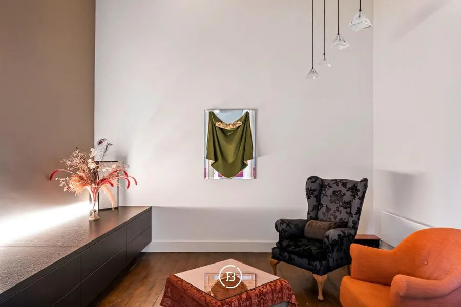 On the first floor, there are 2 spacious bedrooms, with the master bedroom having an ensuite dressing room, a very spacious bathroom with a freestanding bath and a view of the park garden, and a spacious office/room. There is also a small bathroom with a toilet near the service staircase.