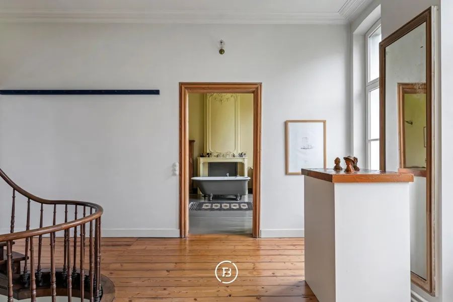 This exceptional castle estate is located on a generous plot of 12,401 m² and is surrounded by a beautifully landscaped park garden that guarantees complete privacy and tranquility. The castle embodies a rare harmony between historical grandeur, contemporary living comfort, and absolute serenity. It is set in a romantic-style landscape park, with a picturesque pond and bridges, an exceptionally well-preserved ice cellar, and an impressive ancient cedar tree. Upon entering the main building, you are welcomed into a stately entrance hall that immediately reveals the grandeur of the house. Impressive spaces, high ceilings, and large windows provide an abundance of natural light and enchanting views of the garden. Adjacent to the main building is a quality renovated caretaker’s house, with entrance and parking outside the entrance gate. Adjacent to the caretaker’s house are two spacious attached garages. The caretaker’s house is not included in the price. An ideal property for large families, professionals, offices, commercial use, or a combination of majestic living and working. Classification