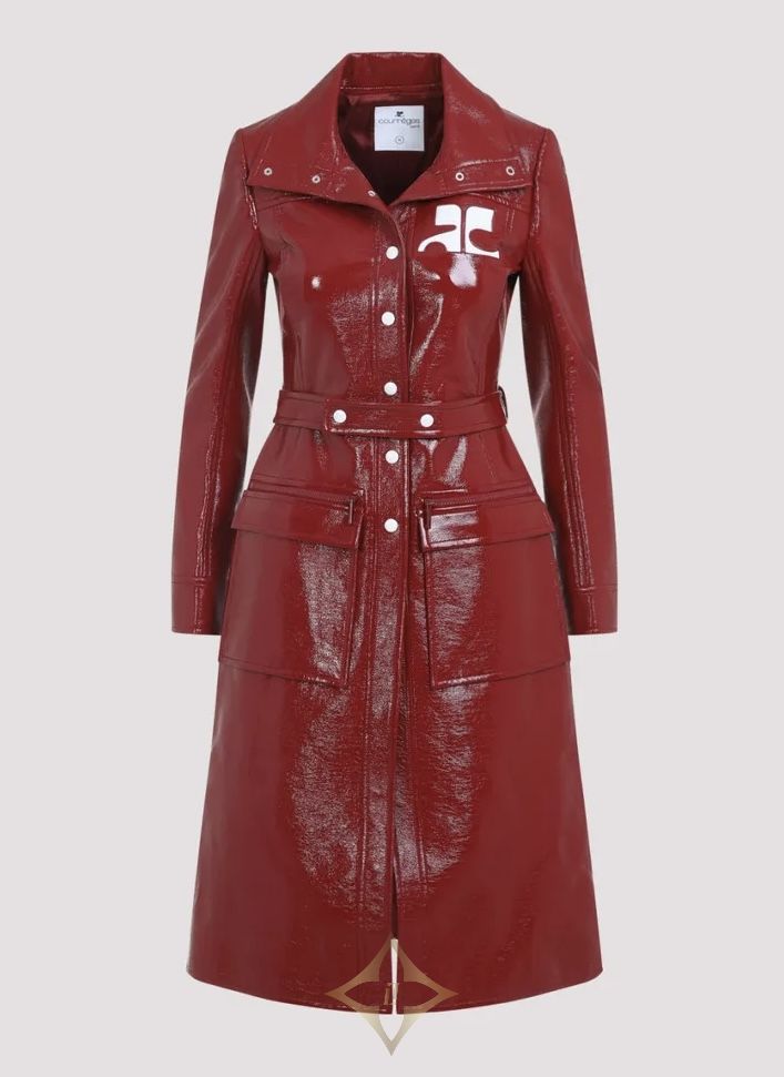 Courreges belted trench coat. red stretch-cotton faux leather | Novara 🇮🇹