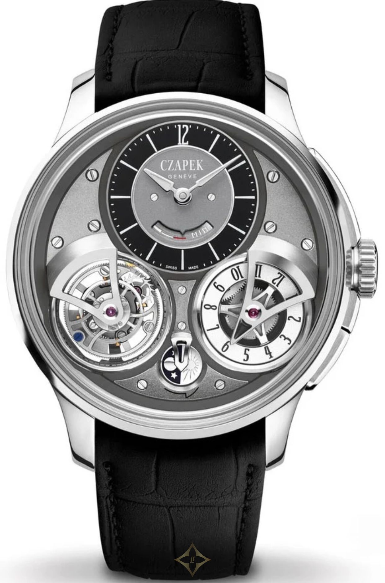Czapek Place Vendome Titanium Edition Ombres. he Place Vendome is a collection dedicated to exceptional watchmaking projects. From its first models, the Tourbillon Suspendu Ici et Ailleurs featuring a tourbillon and a second time zone indication, to the double escapement Complicite in collaboration with Bernhard Lederer, this line celebrates the best of fine watchmaking.