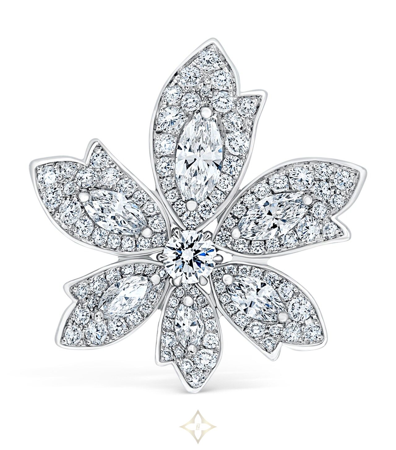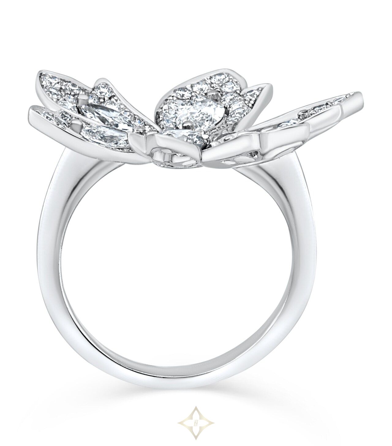 White Gold and Diamond Palm Flower Ring