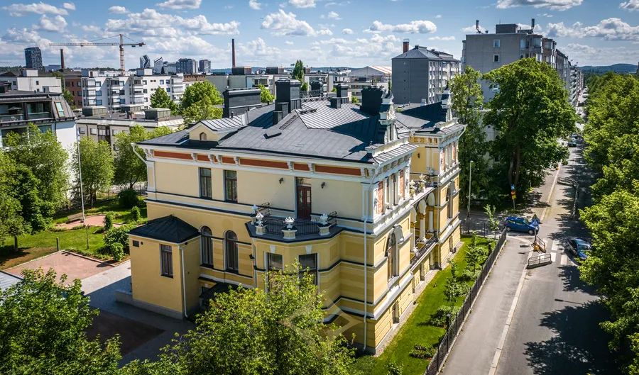 The Little Palace is in the center of Tampere at the corner of Hämeenpuisto and Puuvillatehtaankatu. Finlayson’s historic factory area, which is currently in office and business use, is located approx. 400 m away. This architecturally and culturally-historically valuable building is perfectly suited for residential use, but also works brilliantly as a high-quality commercial space for parties and gatherings. Originally, the building was completely used for residential purposes, e.g. resided by Finlayson’s property manager, but has also served as an office between 1982 and 2001. After extensive renovations between 2004 and 2006, the middle and basement floors of the building have been used for festivities and other events. The top floor has mainly been in private use and lately as an art and antique exhibition space.