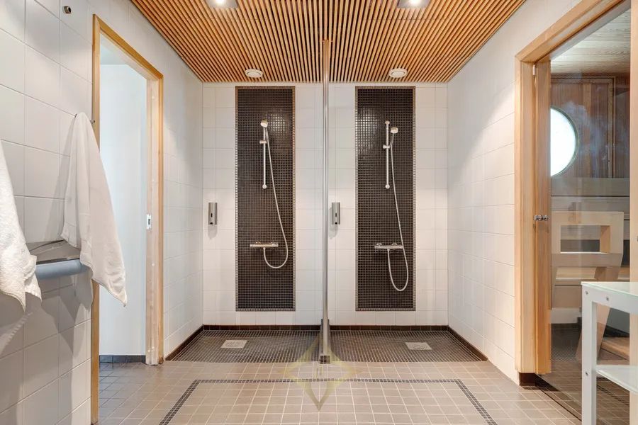 Also not to be overlooked is the astonishingly wonderful art mosaic work by Tuula Lehtinen in the swimming pool section of the basement floor and the English-style billiard room, which exudes the building’s original 19th-century atmosphere, with its wonderful, vaulted ceilings and original fireplaces and wall paneling.