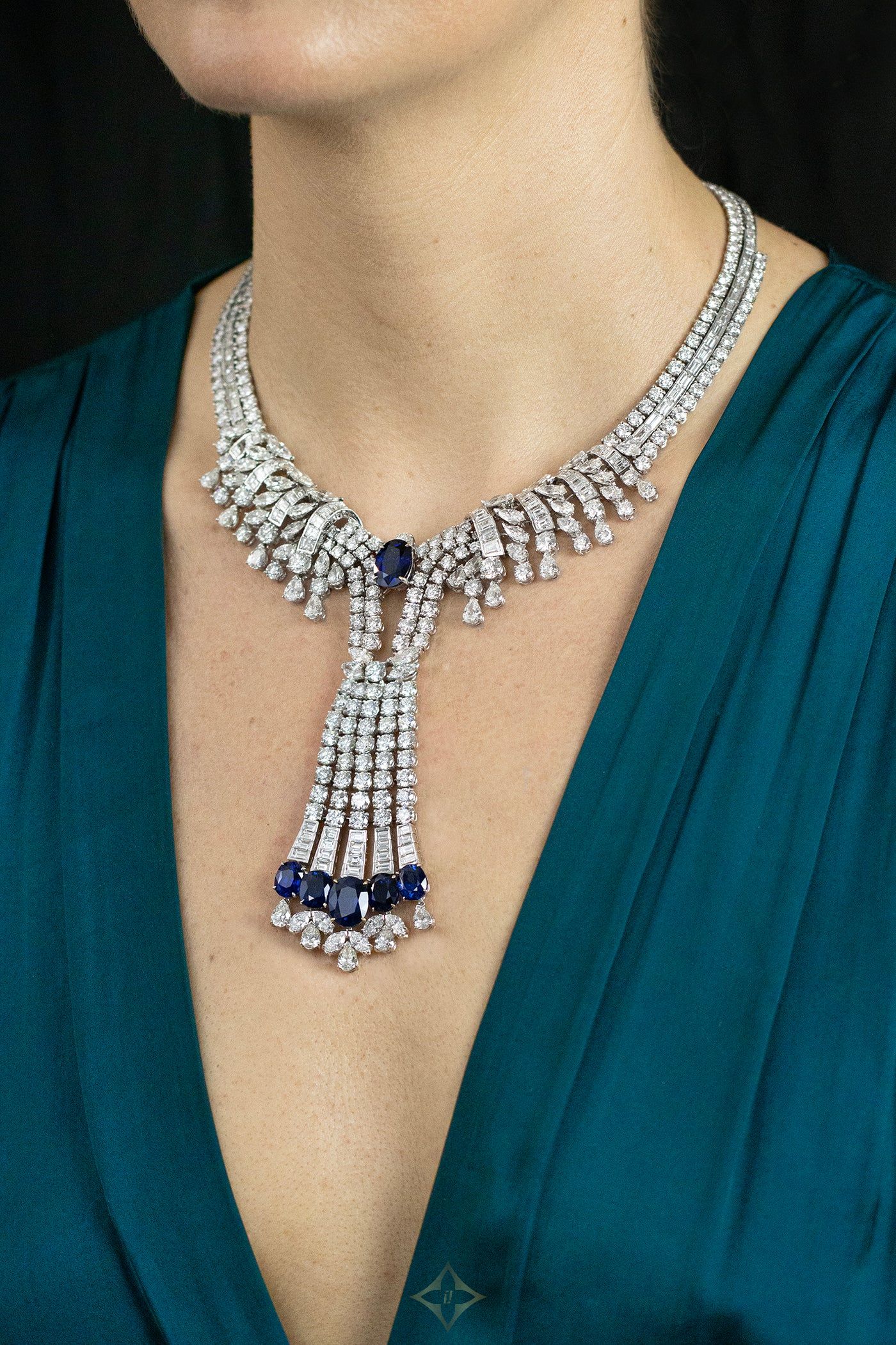 119.30 Carat Total Important Sapphire & Mixed-Cut Diamond Drop Necklace in White Gold | New York 🇺🇸