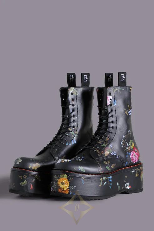 DOUBLE STACK BOOT Black Floral