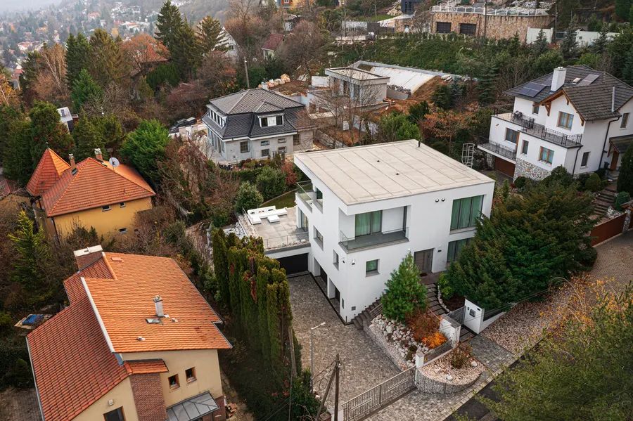 Set at the edge of protected Natura 2000 woodland in one of Budapest’s most sought-after residential enclaves, this newly completed contemporary villa represents a rare harmony of refined architecture, advanced technology and untouched natural surroundings.