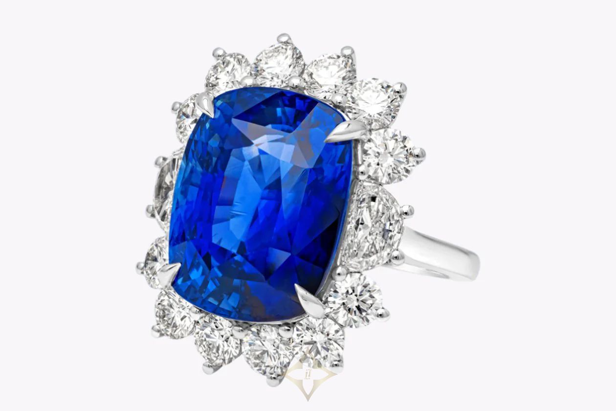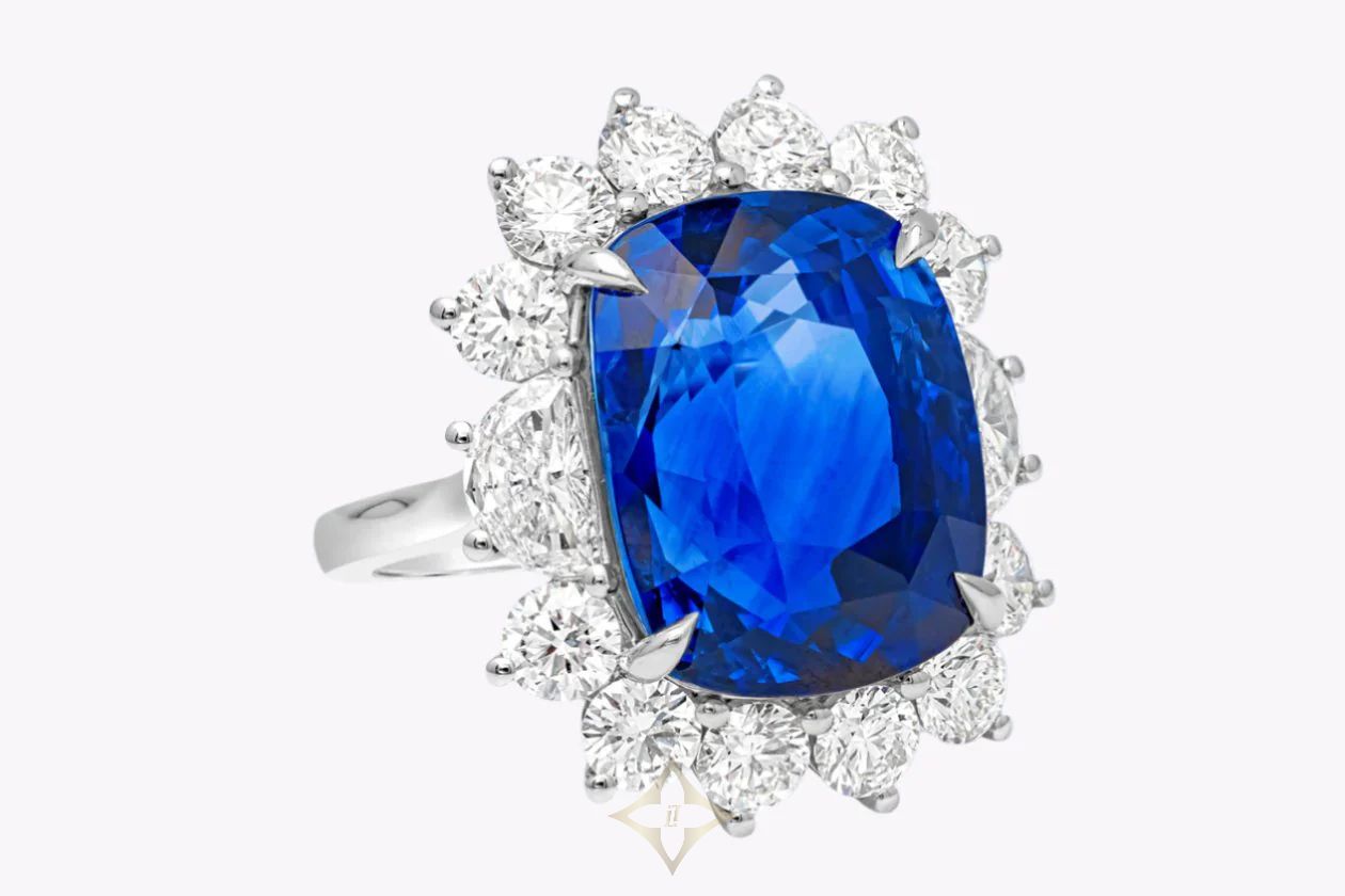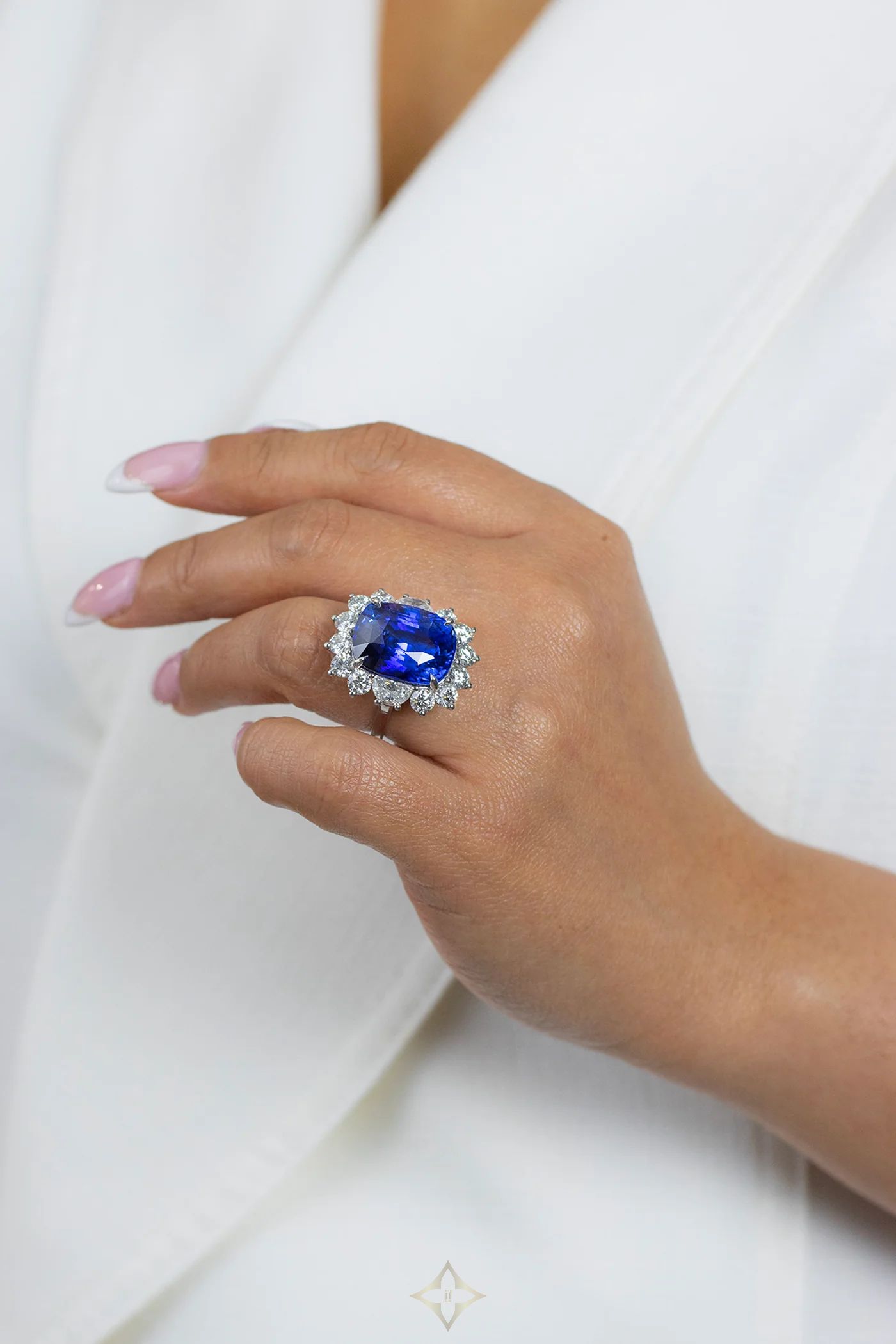 GIA Certified 22.05 Carats Cushion Cut Sapphire & Diamond Halo Engagement Ring in White Gold | NY 🇺🇸