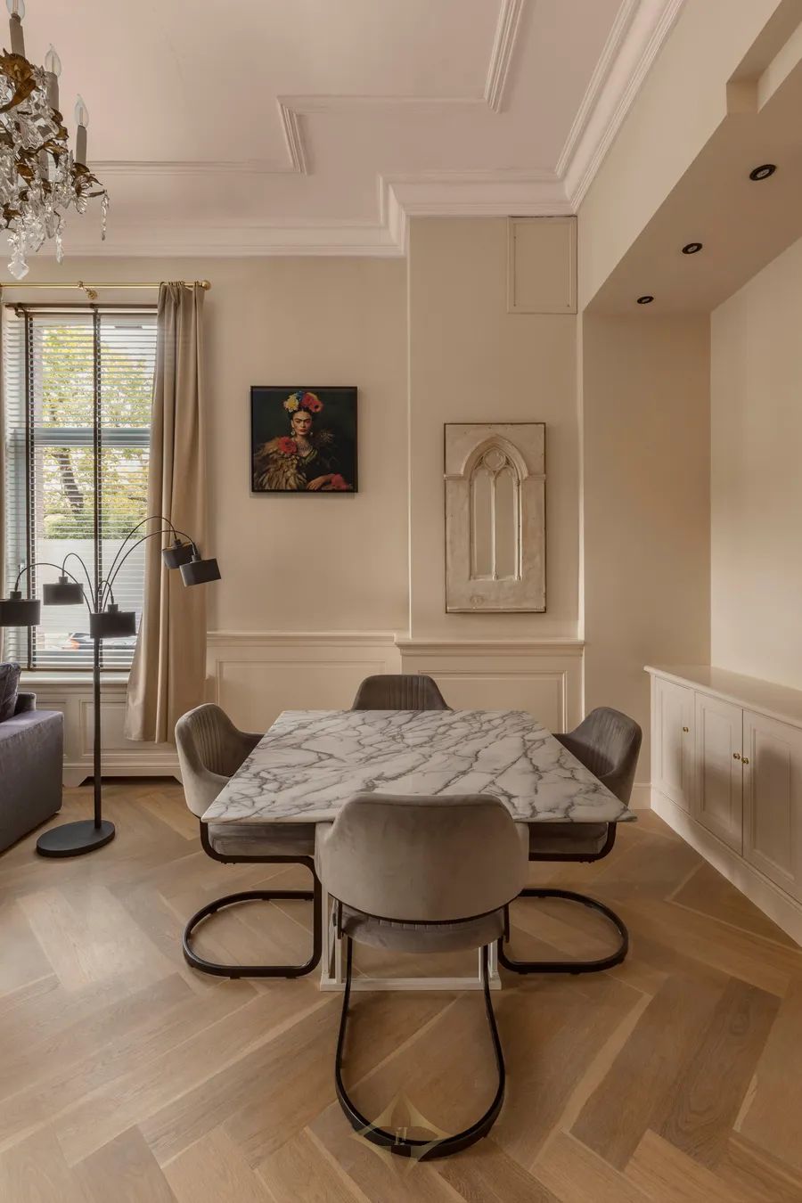 - High ceilings, large windows, corner position