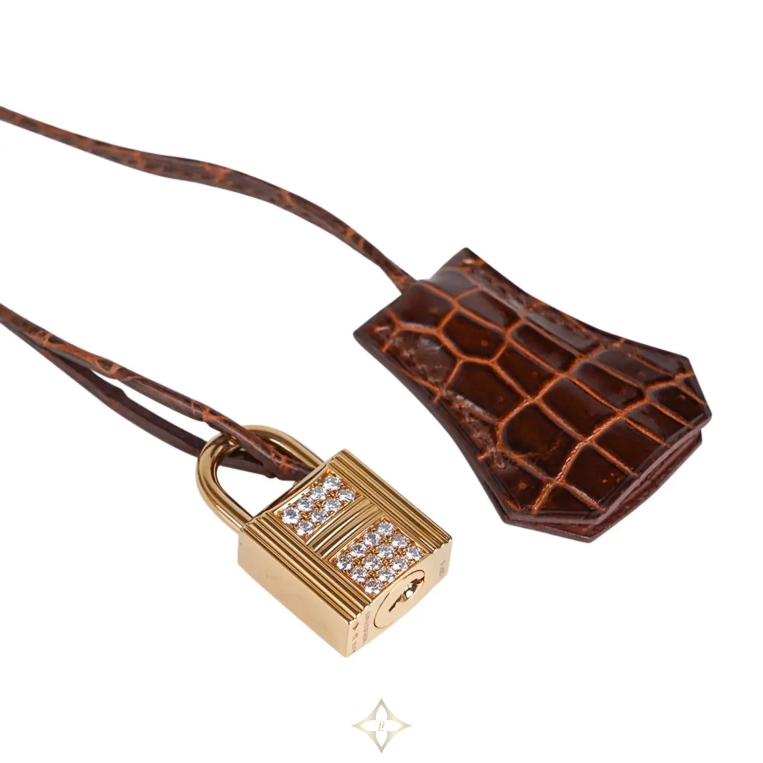 Hermes Limited Edition Birkin 35 Diamond Miel Porosus Crocodile with Gold Hardware Price: $ 325,825 This exceptional limited edition Hermes Birkin 35 Diamond Porosus Crocodile bag is featured in honeyed Miel. Exquisite and rare color, this Hermes Birkin bag with 18K Yellow Gold. This rare masterpiece features 10.23 carats of ethically sourced Hermes diamonds, showcasing unparalleled craftsmanship. Comes lock and keys in the clochette, sleeper and rain protector. Plastic on hardware. Carried one time. Indulge in timeless luxury with this exclusive Hermes Diamond Birkin bag — an extraordinary addition to any collection. final sale BAG MEASURES LENGTH 35 cm / 14″ TALL 25 cm / 10″ DEEP 18 cm / 7″ HANDLES: TALL 5″ CONDITION: Very Like New MIGHTYCHIC 4000 Towerside Terrace, Miami, FL 33138, United States Office: +1 (305) 899-9872 Mobile/WhatsApp: +1 (305) 588-5788 Email: debra@mightychic.com
