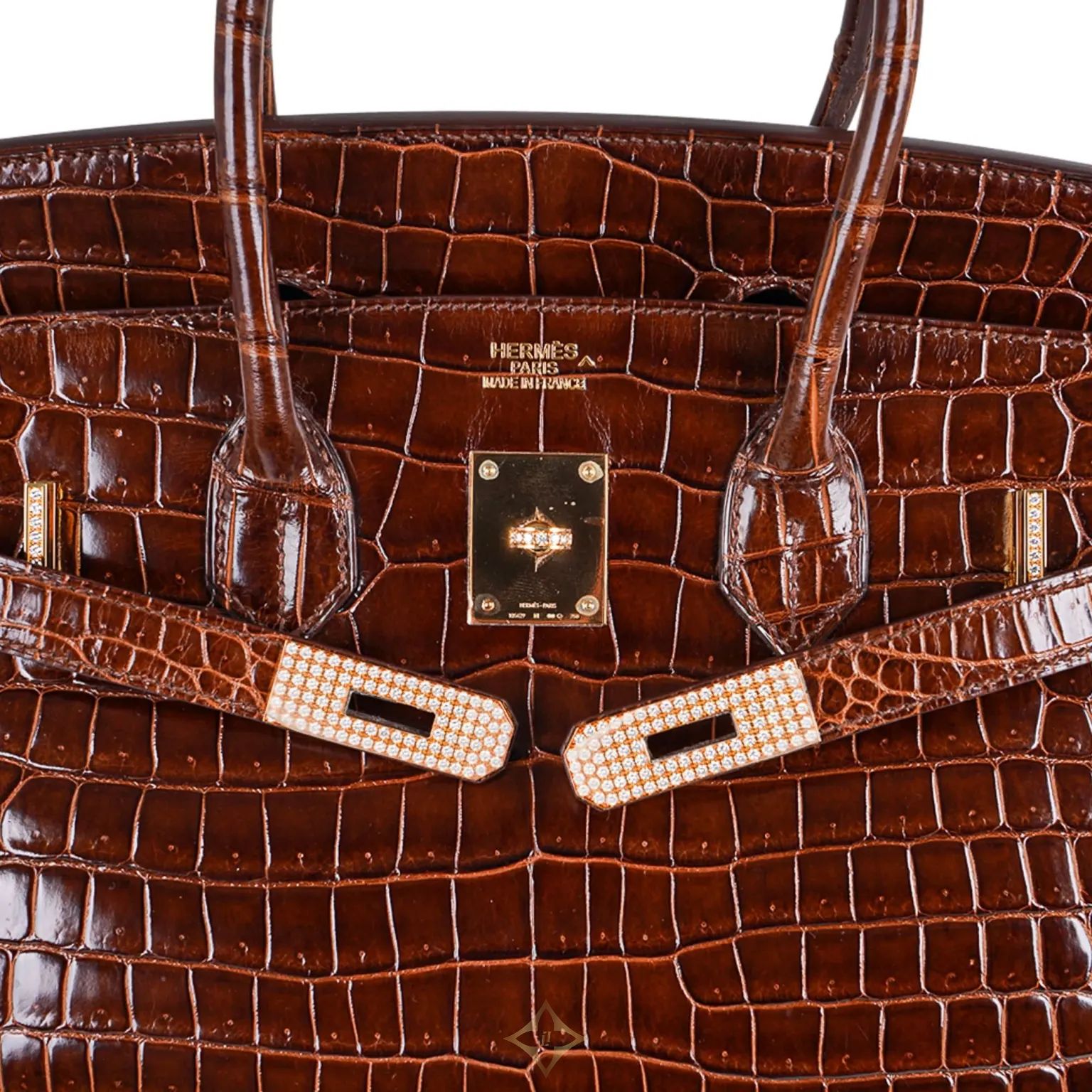 Hermes Limited Edition Birkin 35 Diamond Miel Porosus Crocodile for Sale | FL 🇺🇸