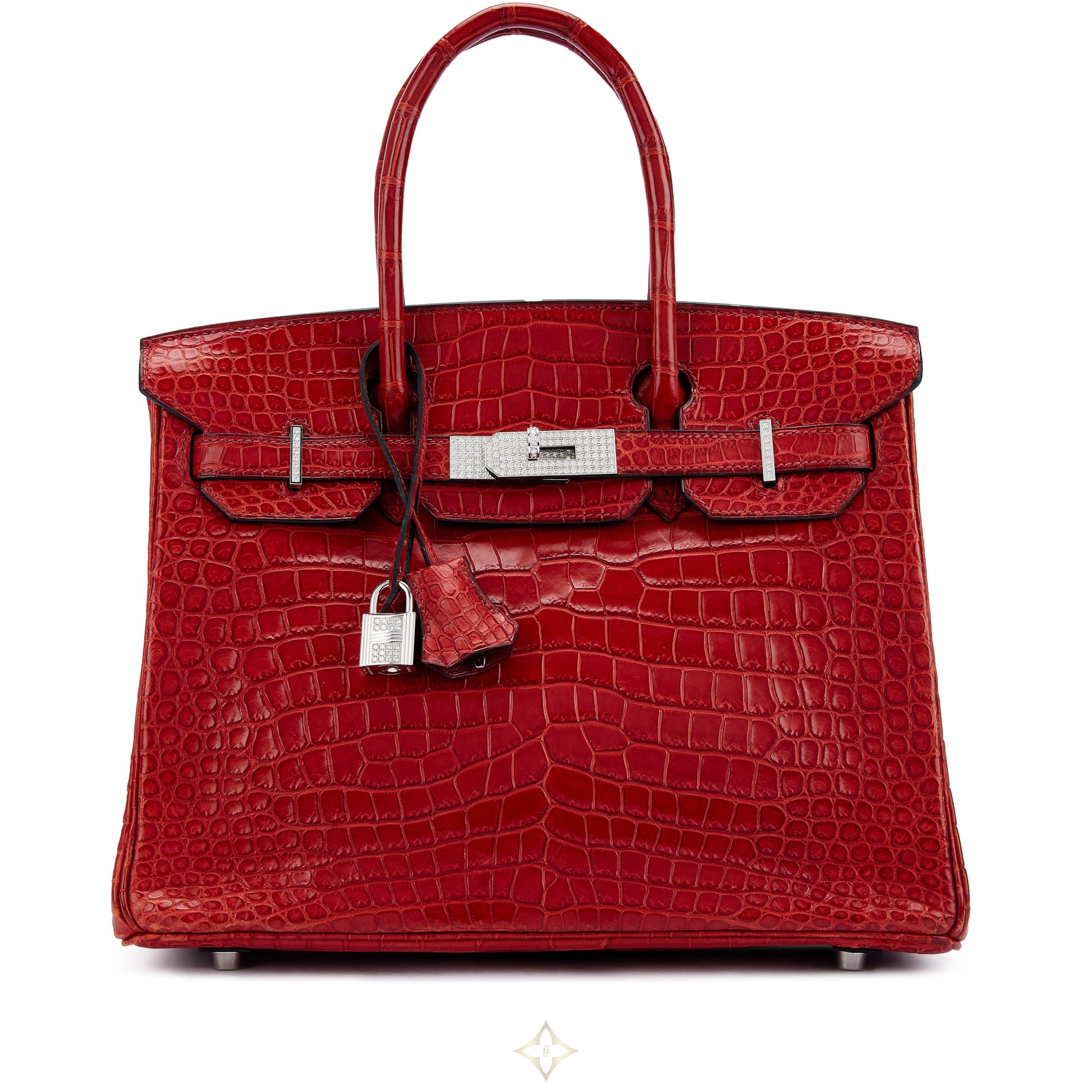 Hermès Rouge H Matte Porosus Crocodile Birkin 30 18K White Gold and Diamond Hardware, 2007 Price: 95,000 USD • Taxes not included VAT and other taxes are not reflected in the listed pricing. • Ships from: Hong Kong, Hong Kong This item ships within Hong Kong only • Authenticity guaranteed We guarantee the authenticity of this item. Description Hermès Rouge H Matte Porosus Crocodile Birkin 30 18K White Gold and Diamond Hardware, 2007 The interior is lined in tonal Chèvre leather Includes clochette, lock, keys and dust bag This item is final sale and not eligible for return Condition Report: Very Good Minor scratches to hardware. Moderate marks, press marks and scratches to the exterior and on the inside. Corner wear. Year: 2007 Dimensions: Height: 8.66 inches / 22 cm Width: 11.81 inches / 30 cm Depth: 6.3 inches / 16 cm Handle Drop: 3.74 inches / 9.5 cm SKU: DCQ5X ——— Sothebys Hong Kong LANDMARK CHATER, 8 Connaught Road, Central, Hong Kong CONTACT Fusako Oshima (Specialist, Private Sales, Asia Hong Kong) Email: fusako.oshima@sothebys.com Phone: +852 2822 5510