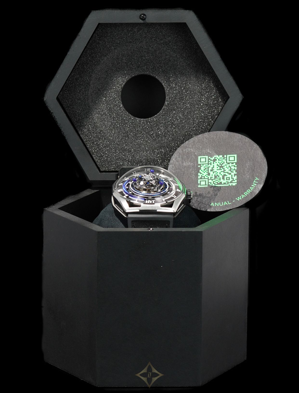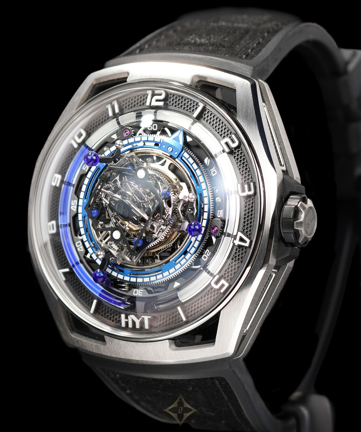 This HYT H03068-A Conical Tourbillon Titanium Blue Limited Edition is in EXCELLENT condition. This watch includes its original box and warranty not dated. This watch has been fully authenticated and certified by Exquisite Timepieces.