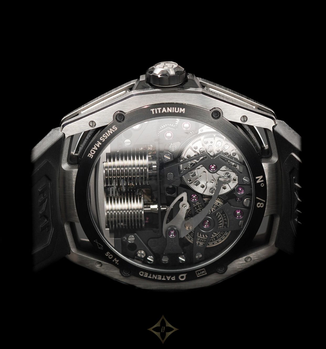 Titanium & black DLC titanium case, Titanium side grids with black background