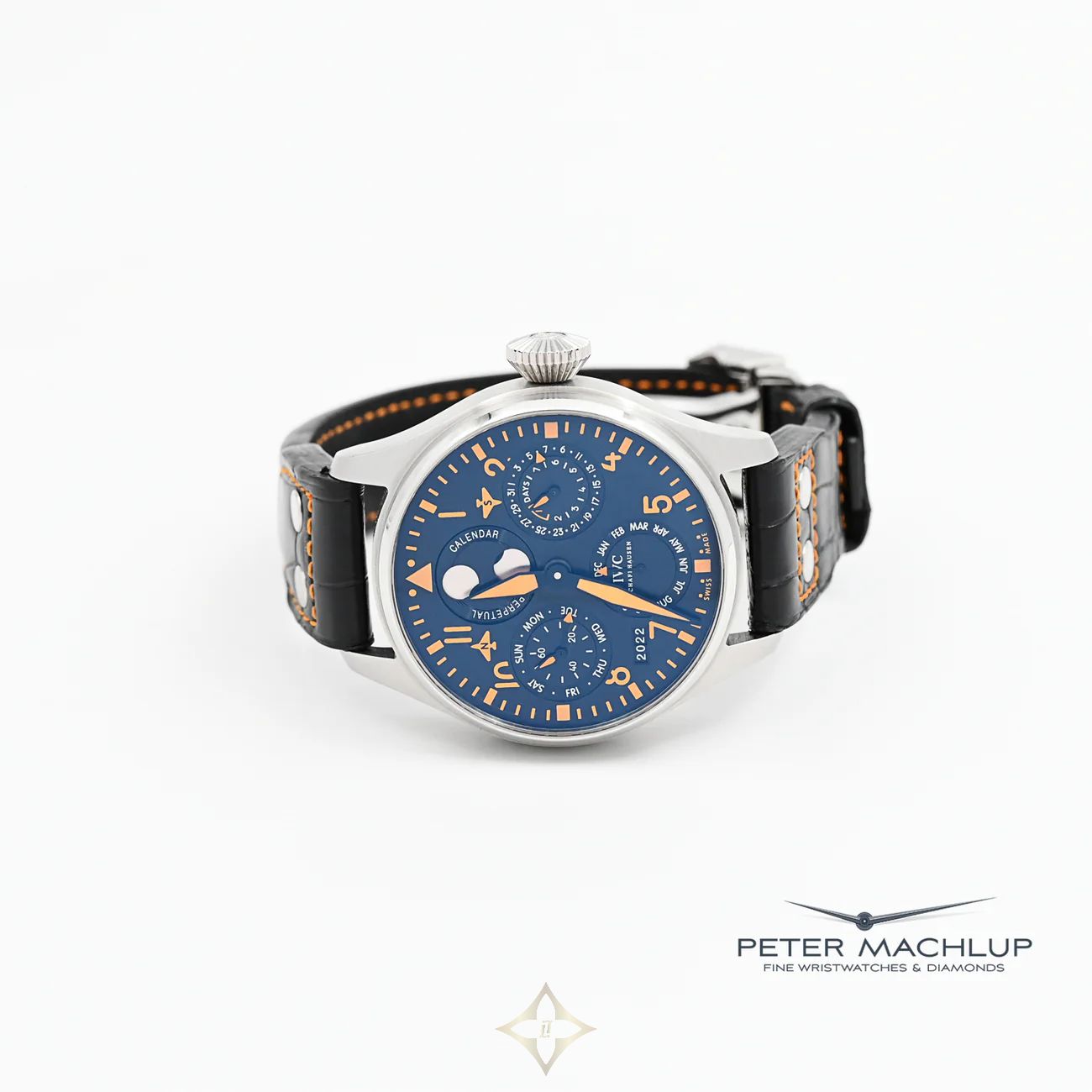 IWC Big Pilot Perpetual Calendar 2010 PRICE: $27,000.00 USD Model number: IW502618 Case Material: Stainless steel Case Diameter: 46mm Movement Type: Automatic Original Guarantee: Undated Year: 2010 Condition: Very good Additional notes: Limited edition - 250 pieces Stock number: IW10978 All our watches are sold with a 1 Year Warranty. This is images of the actual watch. We do not use stock images. ——— Peter Machlup Fine Wristwatches (Pty) Ltd KNOX BUILDING - 01 River St, Houghton Estate, Johannesburg, 2198, South Africa Telephone: +27 11 684 1222 WhatsApp: +27 67 797 3721