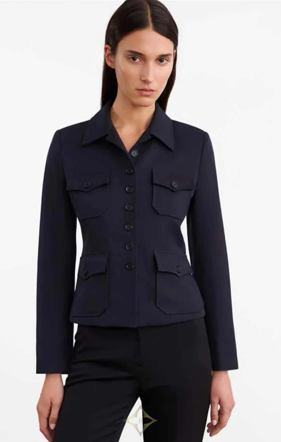 Slim fit collared jacket in Italian wool. Chest patch pockets with flaps. Patch pockets with flaps. Logo horn buttons. Buttons at center front and cuff. Fully lined.