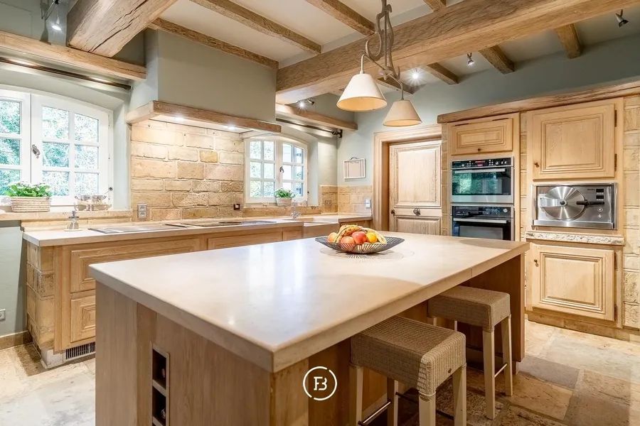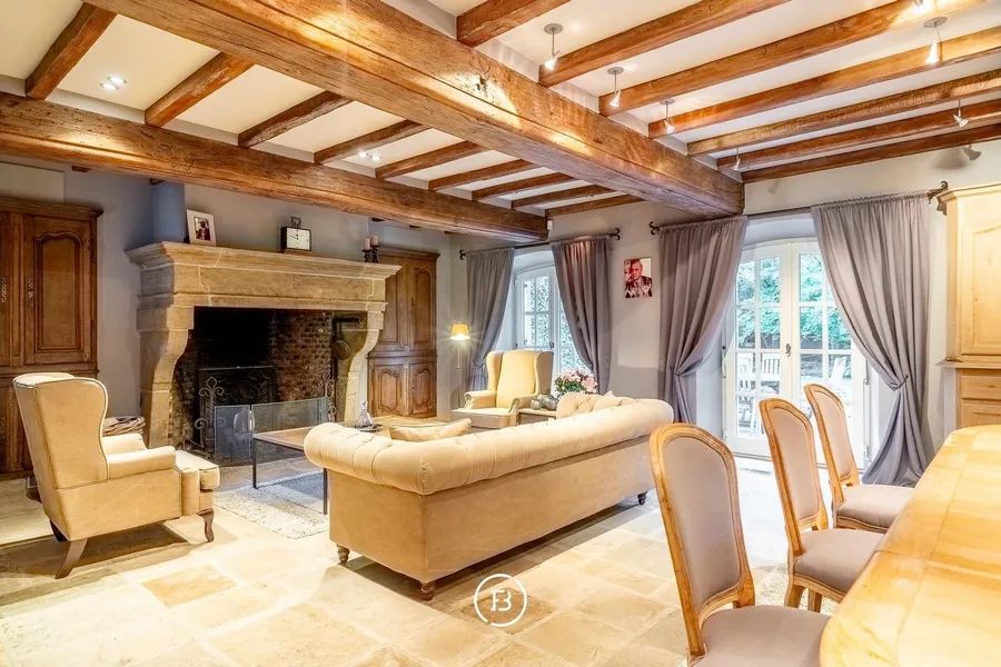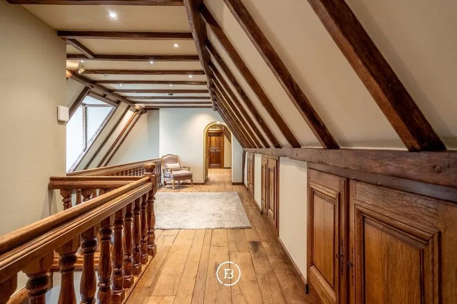 Nestled amid the greenery and tranquillity of Hertsberge, this magnificent country residence reveals itself at the end of a stately driveway lined with centuries-old trees. Set on a generous plot of 8,260 m² and offering a living area of approximately 635 m², this property combines comfort, serenity and refined elegance in a unique way. A charming cloister hallway welcomes you into the grand living room with open fireplace – a warm and inviting space for family gatherings or elegant receptions. The adjoining dining room and orangery offer beautiful views of the landscaped gardens, while the country-style kitchen, fully fitted and finished to perfection, is a dream for any cooking enthusiast.