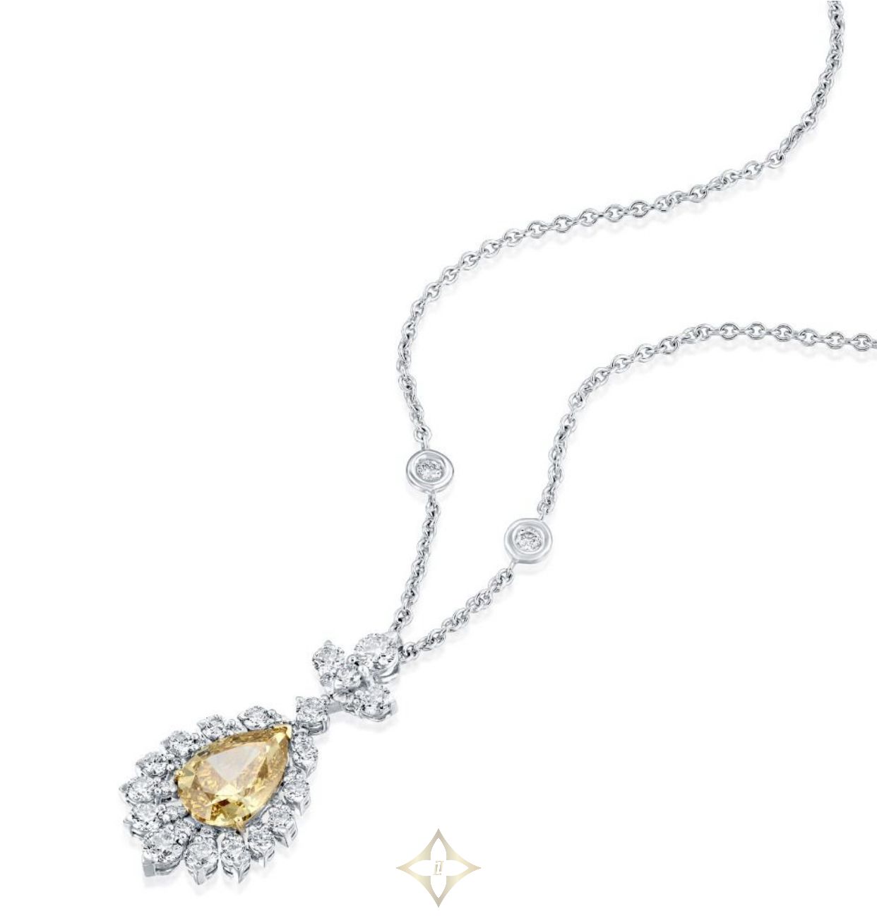 LEO PIZZO Fancy Fancy drop necklace in 18K white gold set with 4.77 CT of diamonds for Sale | Tel-Aviv israel 🇮🇱