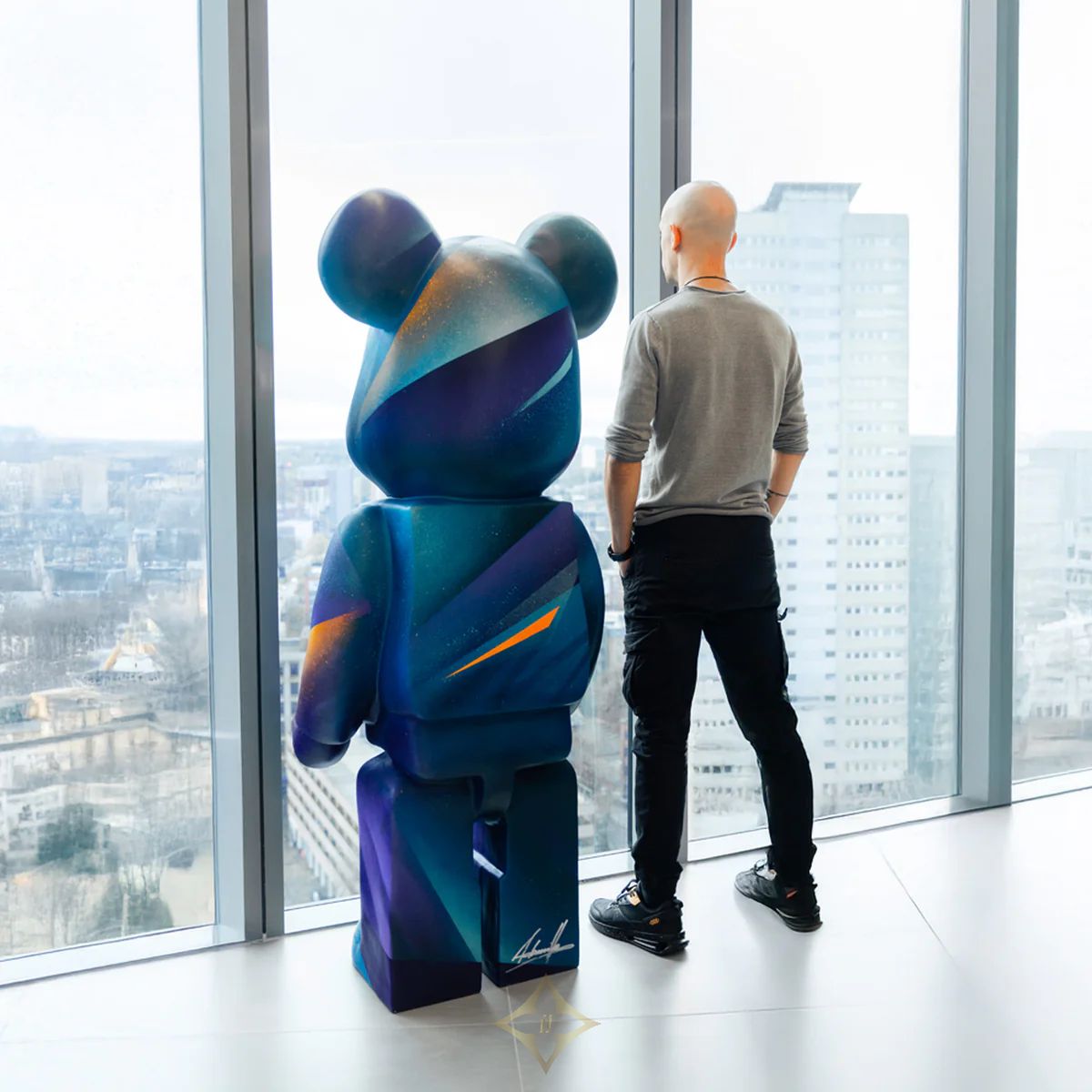 Introducing the Midnight Sunset Bear Sculpture in 165cm, an exclusive art piece that fuses contemporary design with profound symbolism. This limited edition, 1 of 1 sculpture, is the result of our unique collaboration with renowned mural artist Adam Illes.