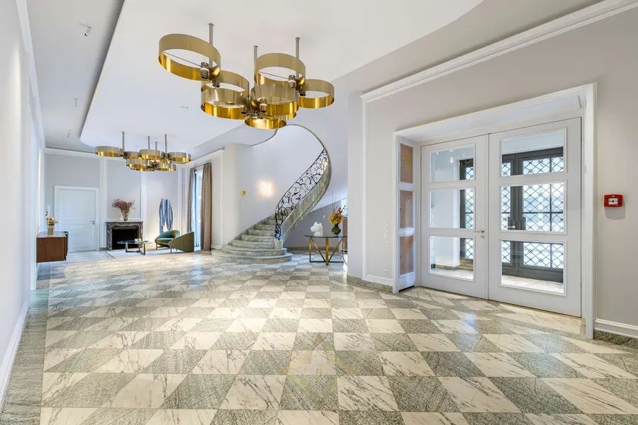 Historic details and modern elements form a rare symbiosis in this villa and combine to create a top-class living environment. A finely balanced color concept, a professional lighting system, the finest custom-made fixtures, state-of-the-art building technology, a sophisticated security concept and many other amenities underline the outstanding quality of this villa. An elevator connects all floors without steps. There are six parking spaces in the garage and three outside parking spaces.