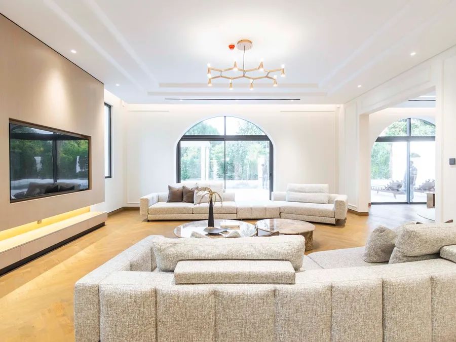 Introducing Desert Leaf 5, an opulent villa located in the prestigious Al Barari community, Dubai. This stunning six-bedroom masterpiece boasts an expansive built-up area of 16,900 sq.ft. and offers every amenity essential for a luxurious lifestyle. The property is designed for comfort and sophistication, perfect for families looking for a lavish retreat.