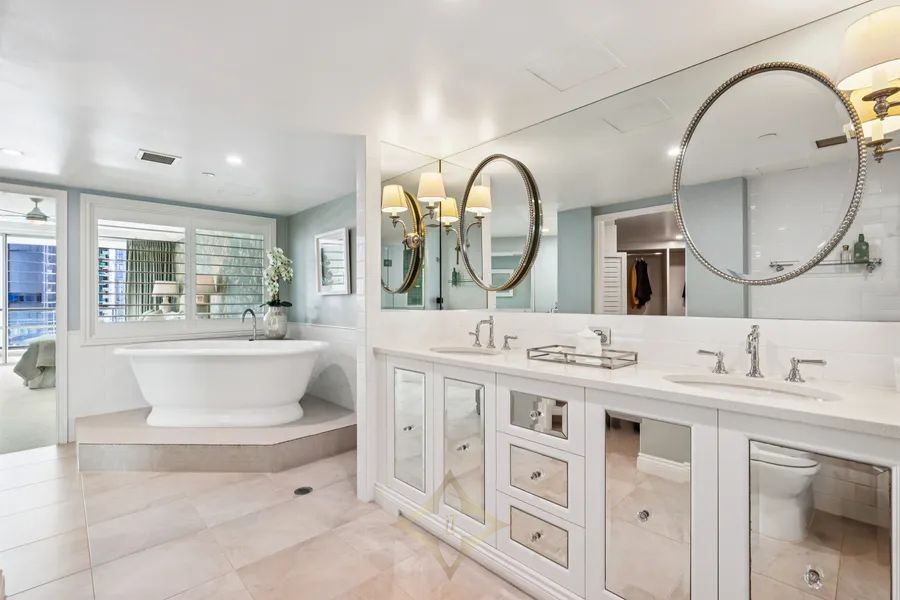 • Luxurious triple-head shower & dual vanity to primary