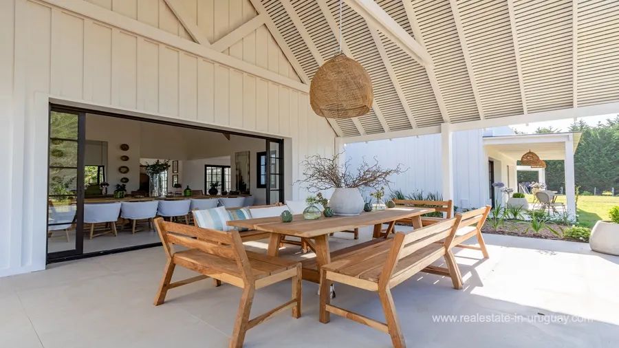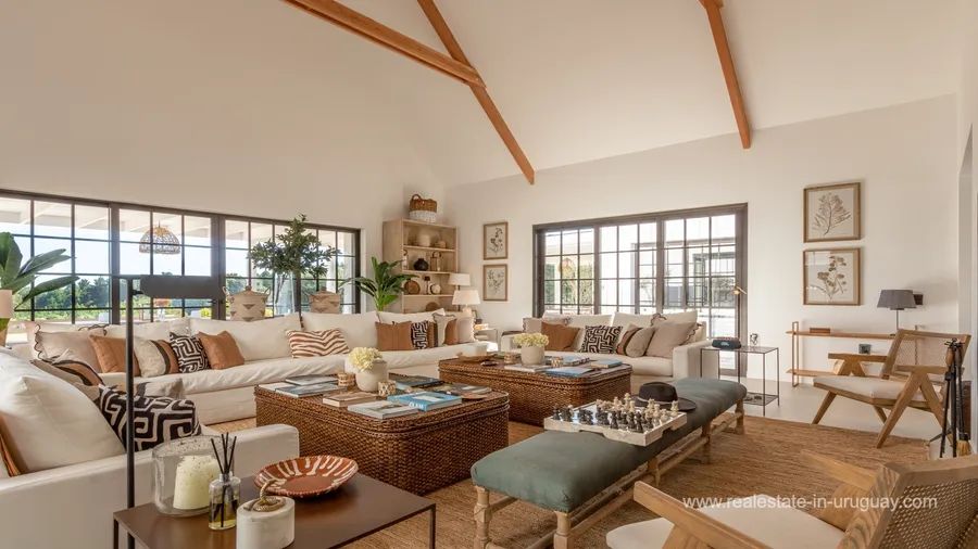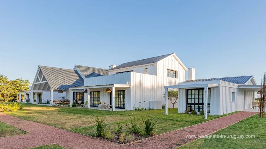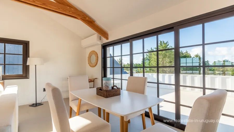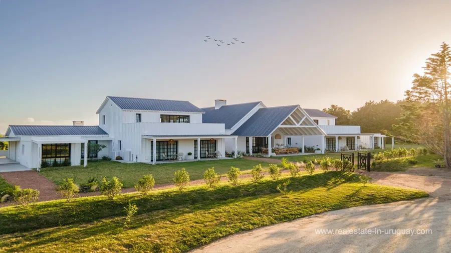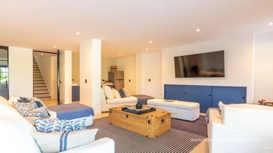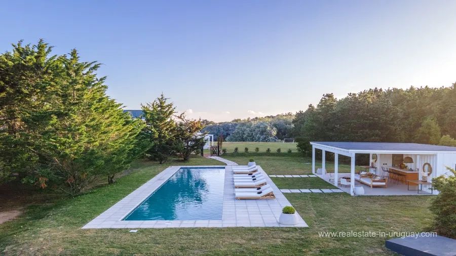 This modern property is located just 10 minutes away from an exclusive location by Jose Ignacio. Accommodating up to 24 guests, it offers a luxurious retreat with exceptional amenities. The impressive main house comprises six spacious suites and two additional guest houses, providing maximum privacy and comfort. A 20-metre swimming pool invites you to relax, while in the pool area, there is a lounge/bar, perfect for get-togethers. The property is highly functional. A lift facilitates access to most areas of the main house, which in addition to a games room, has a fully-equipped office for working from home. A gym, a spacious kitchen, and two living rooms with fireplaces ensure a luxurious lifestyle. Each room has air conditioning and a private terrace affording stunning views of the surroundings. The property has dedicated staff, including a chef, butler, and housekeeping staff. Additional services can be arranged upon request. This modern property is the perfect choice for those looking for an exclusive retreat near José Ignacio.