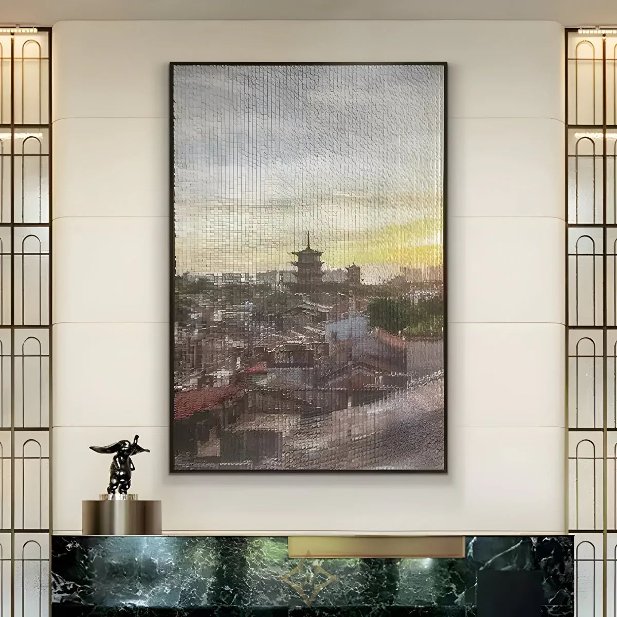 Ideal for upscale hotels, luxury lobbies, corporate corridors, or residential interiors, this large-scale wall installation delivers an impressive visual experience. Its carved textures and layered design reflect light dynamically throughout the day, enhancing the richness of its composition. The warm sunset-inspired hues pair effortlessly with neutral or bold colour schemes, making it adaptable to a variety of interior themes. Each detail celebrates the artistry of modern cityscapes, offering a refined focal point for entrances, feature walls, or gallery-style arrangements. The Vista Wall Art combines modern craftsmanship with architectural elegance, creating a timeless piece that exudes sophistication and charm.