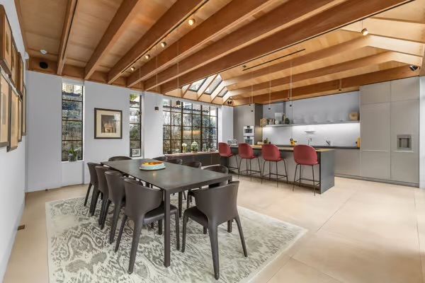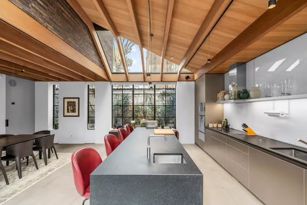 The reception is a bright and airy sanctuary, thanks to its 10-foot-high ceiling and full-wall glass doors opening directly into the courtyard garden. The large kitchen features a dining area, fitted appliances, and dual-aspect access to a private patio on one end and the garden on the other. The entirety of the first floor is dedicated to the principal suite, offering a pair of dressing rooms with an ensuite each. The lower ground floor unfolds over two bedrooms, two bathrooms, and a cinema room - all with direct access to another private patio. The basement houses the private gym, wine cellar, and study, alongside utility spaces and store rooms. Newly built in an energy-efficient manner, vaulted ceilings, wooden flooring, and top-of-the-line fittings are found throughout. It is perched discreetly at the end of a treelined, gated driveway, offering discretion as well as close proximity to Notting Hill's world-class restaurants. The boutiques of Westbourne Grove and the surrounding area are also located moments away. The house is conveniently located near Notting Hill Gate Underground Station, offering excellent connectivity to Central London.