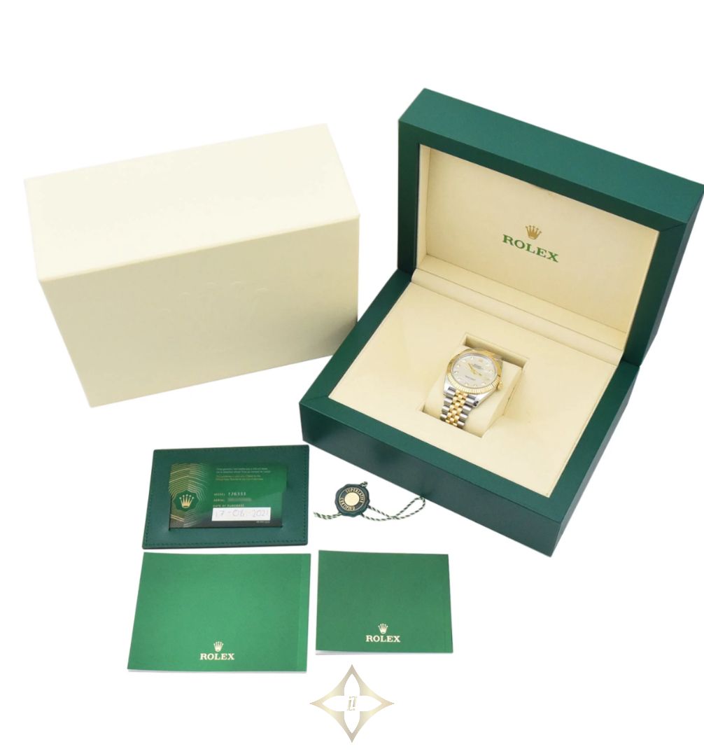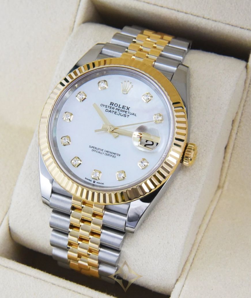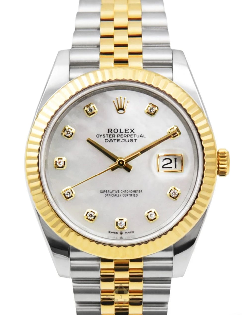 Introducing the Pre-Owned Rolex Datejust, a vision of timeless elegance, featuring a captivating Mother of Pearl Dial and a harmonious blend of Gold and Stainless Steel. Meticulously crafted in 2021, this watch stands as a testament to Rolex's unwavering commitment to luxury, precision, and enduring design. Maintained in excellent condition and presented as a full set with the original box and papers, this Datejust is more than a timepiece; it's a celebration of opulence and refinement.