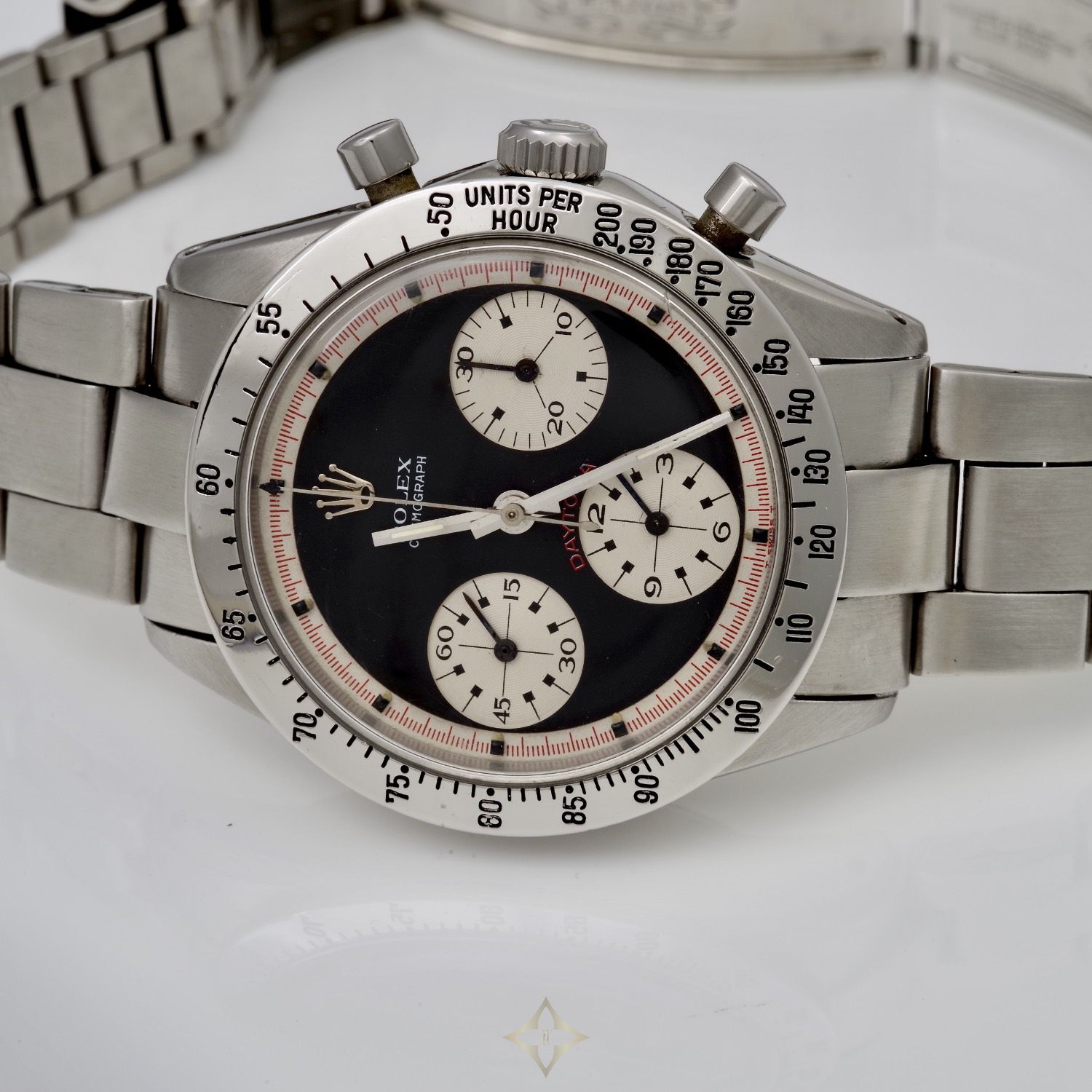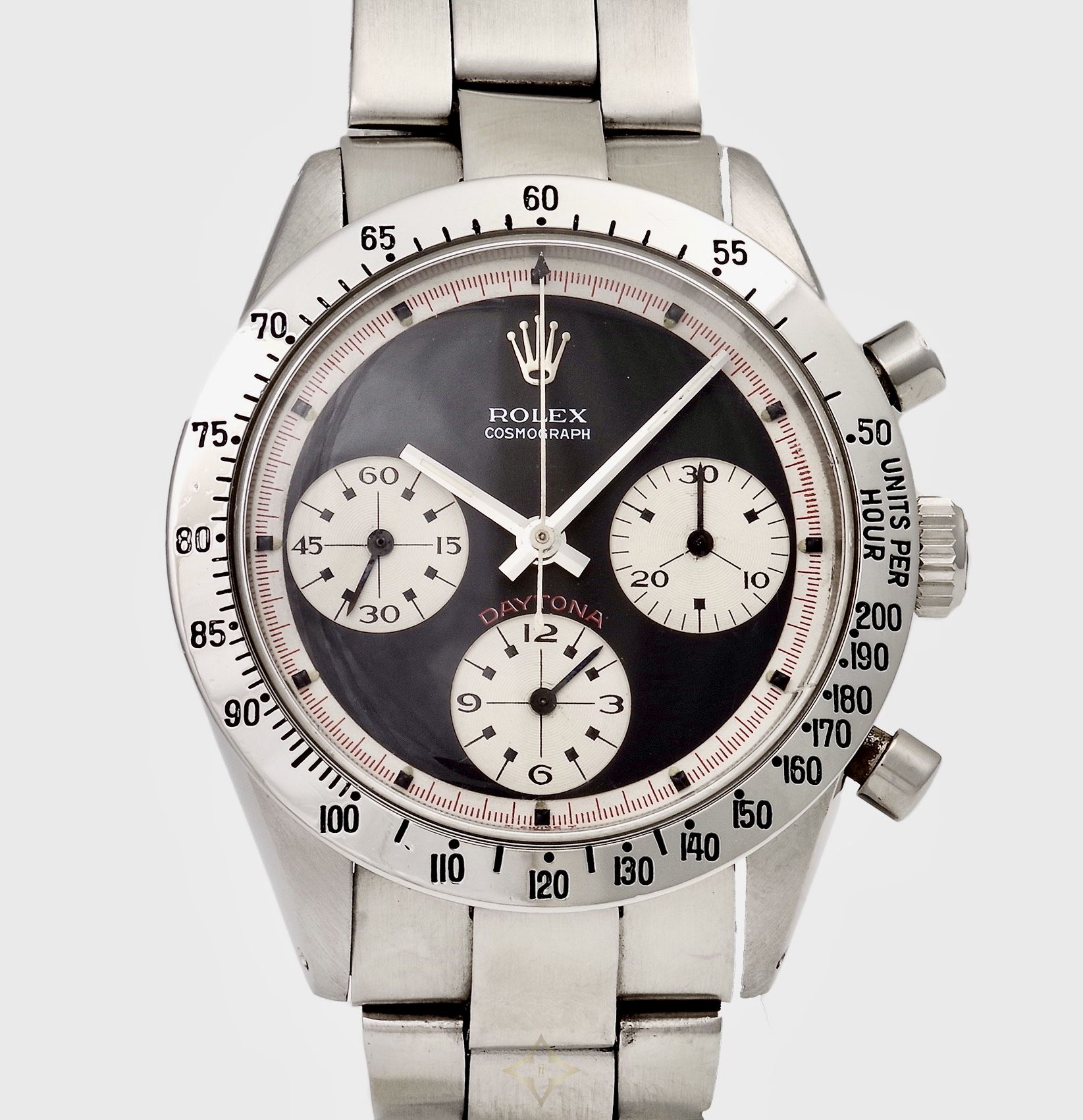 As an attempt to test out the reaction of the market, Rolex released a few dial configurations at the time. There were standard silvered and black dials, and there were rare “exotic” dials. These “exotic” dials are distinguished by the three dimensional construction, with sunken subsidiary dials and sunken outer chapter ring which unfortunately back then did not get a lot of love from collectors. Based on the bitter response, it was estimated that every 20 standard dial Daytonas sold, an “exotic” dial Daytona was sold. However, it wasn't until seeing the watch on legendary car racer and actor Paul Newman's wrist that the market finally realized how uncommon and collectible the dial was, which set off a frenzy of one of the most sought-after Rolex watches to date.
