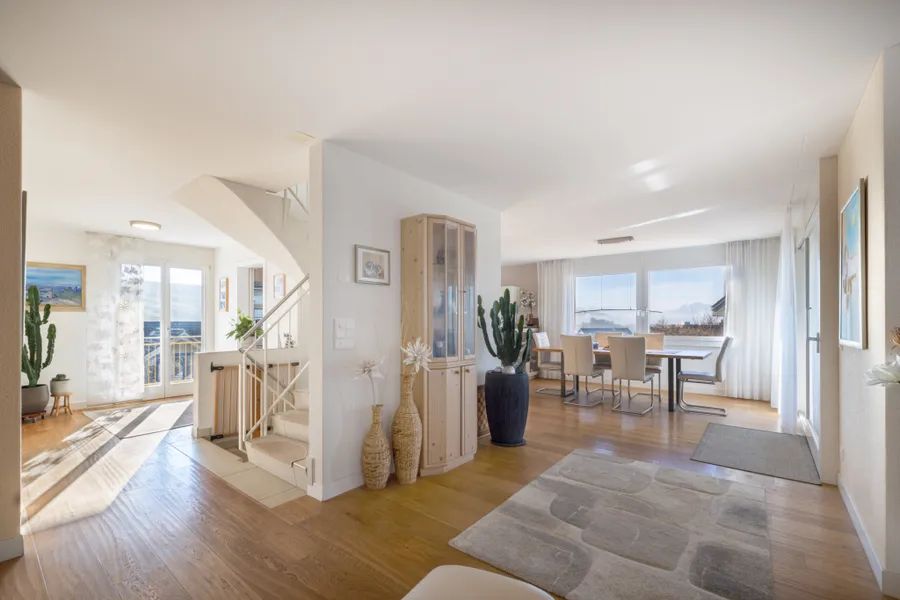 This property is perfect for anyone who appreciates privacy, peace and closeness to nature. Bright rooms, fine oak parquet flooring and an atmospheric fireplace create a warm, stylish living atmosphere. The terraced garden offers a variety of uses – from a relaxed retreat to lively family life.