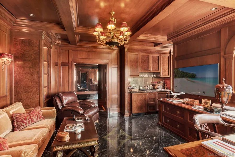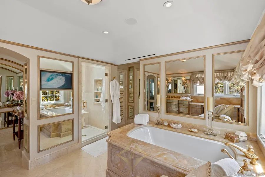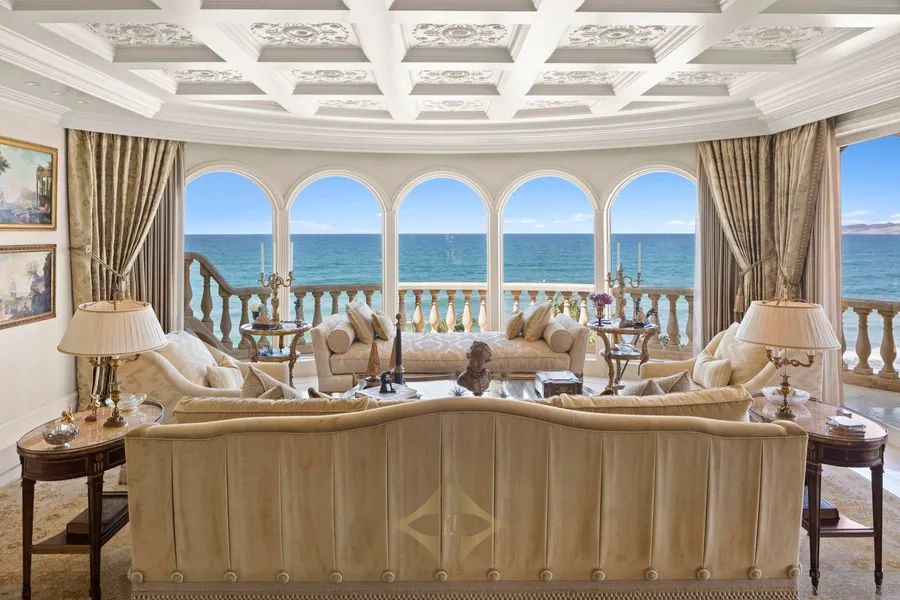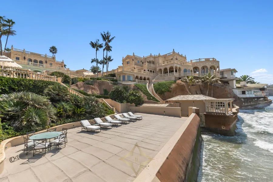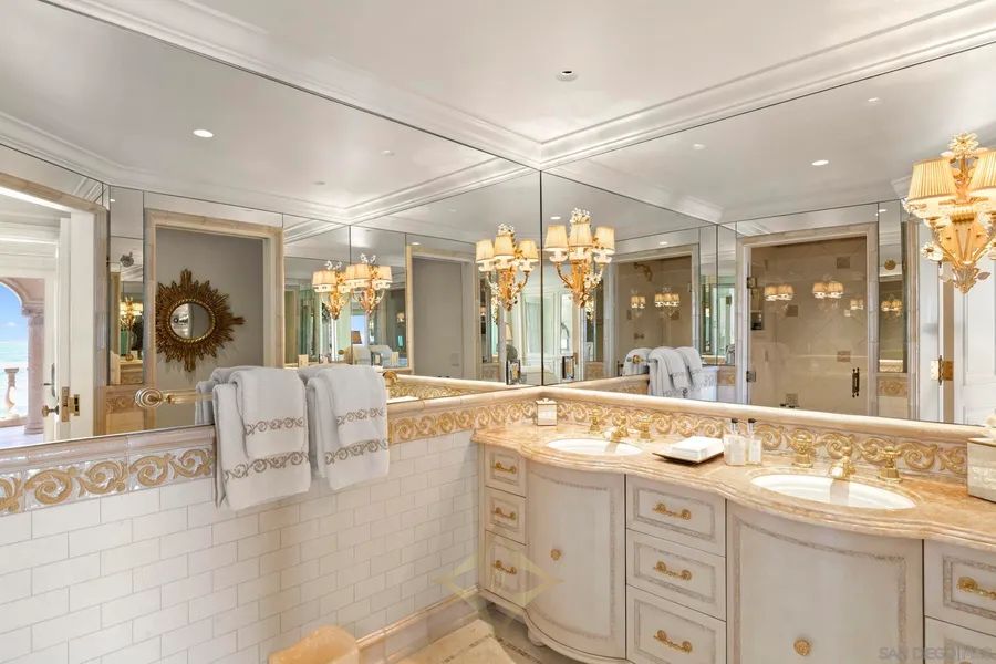 The Sand Castle is La Jolla’s most iconic waterfront jewel and includes one of the only on-property private beaches in California. A stunning homage to the finest manors on the French Riviera, the inspired and meticulous elegance of the Main House, Guest Residence and expansive grounds provides magnificent living while honoring extraordinary unobstructed views of the Pacific and coastline to the west, north and south. European and bespoke interiors and exteriors perfectly meld with modern conveniences, deftly designed and curated by global interior design icon, Timothy Corrigan. A tone-on-tone palette mirrors the sea and sky while continually orienting the visitor towards the home’s dramatic ocean views. No expense was spared in creating The Sand Castle. Multistory, manicured hedges cocoon the property, and upon entry through the magical courtyard and grand front hall, one is called to the water. Private and secure, luxurious and serene, The Sand Castle evokes the most sumptuous of grand hotels, with solid gold gilded rooms, a Thassos-tiled salt-water pool, extensive terraces and patios, an elevator, two marvelous cabanas, fitness center, spa, bespoke statues and chandeliers, firepit, boat bar, and a host of private spaces in which to observe the rolling waves and experience dramatic sunsets. The Sand Castle is truly one-of-a-kind and can never be replicated.