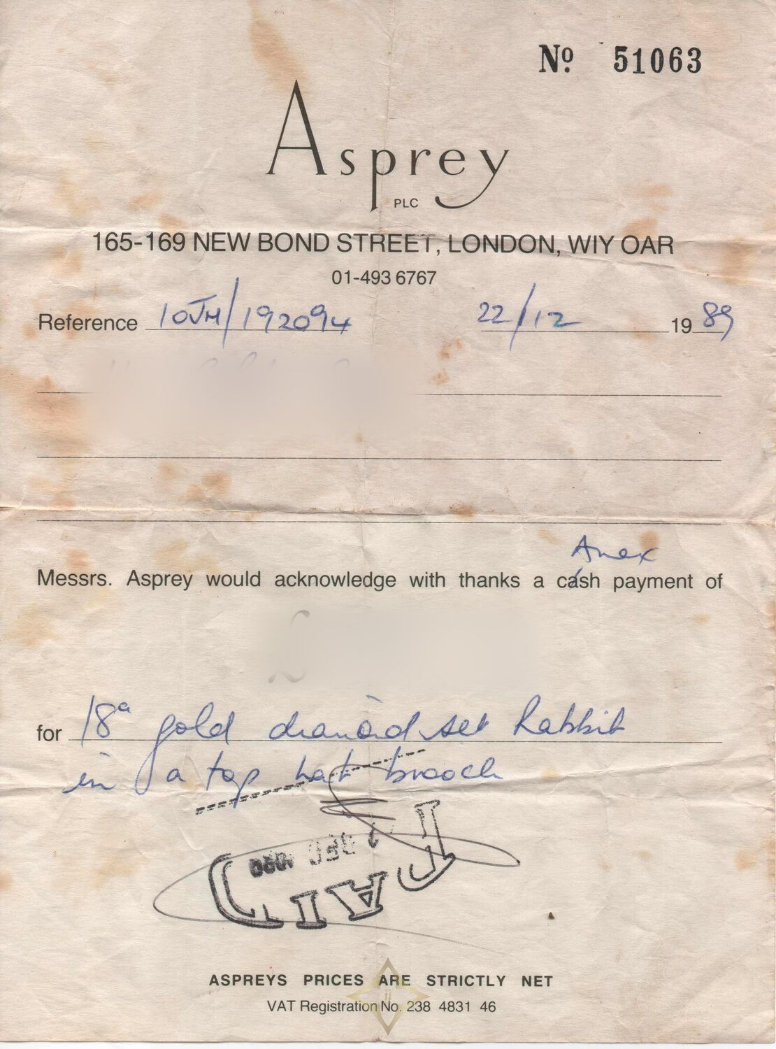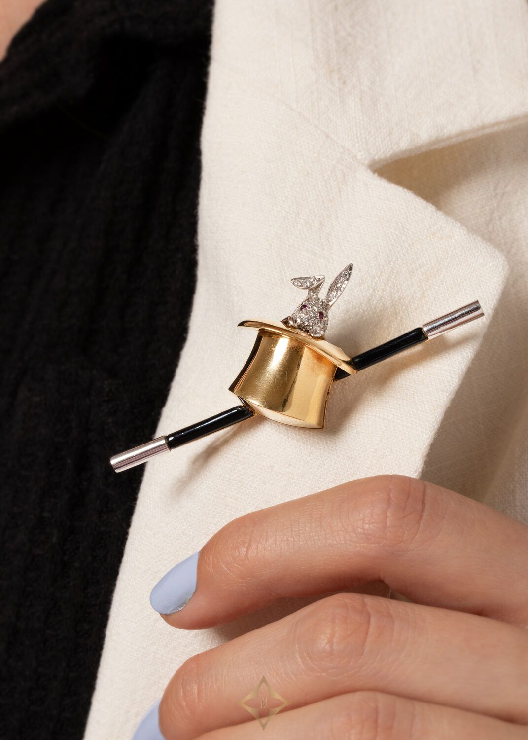 Vintage Asprey Rabbit in a Hat Brooch, c.1980s