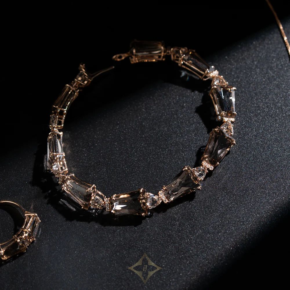 DNA BRACELET IN ROSE GOLD, SMOKED QUARTZ, MURION QUARTZ AND DIAMONDS