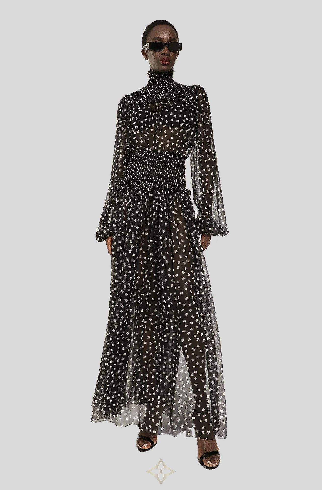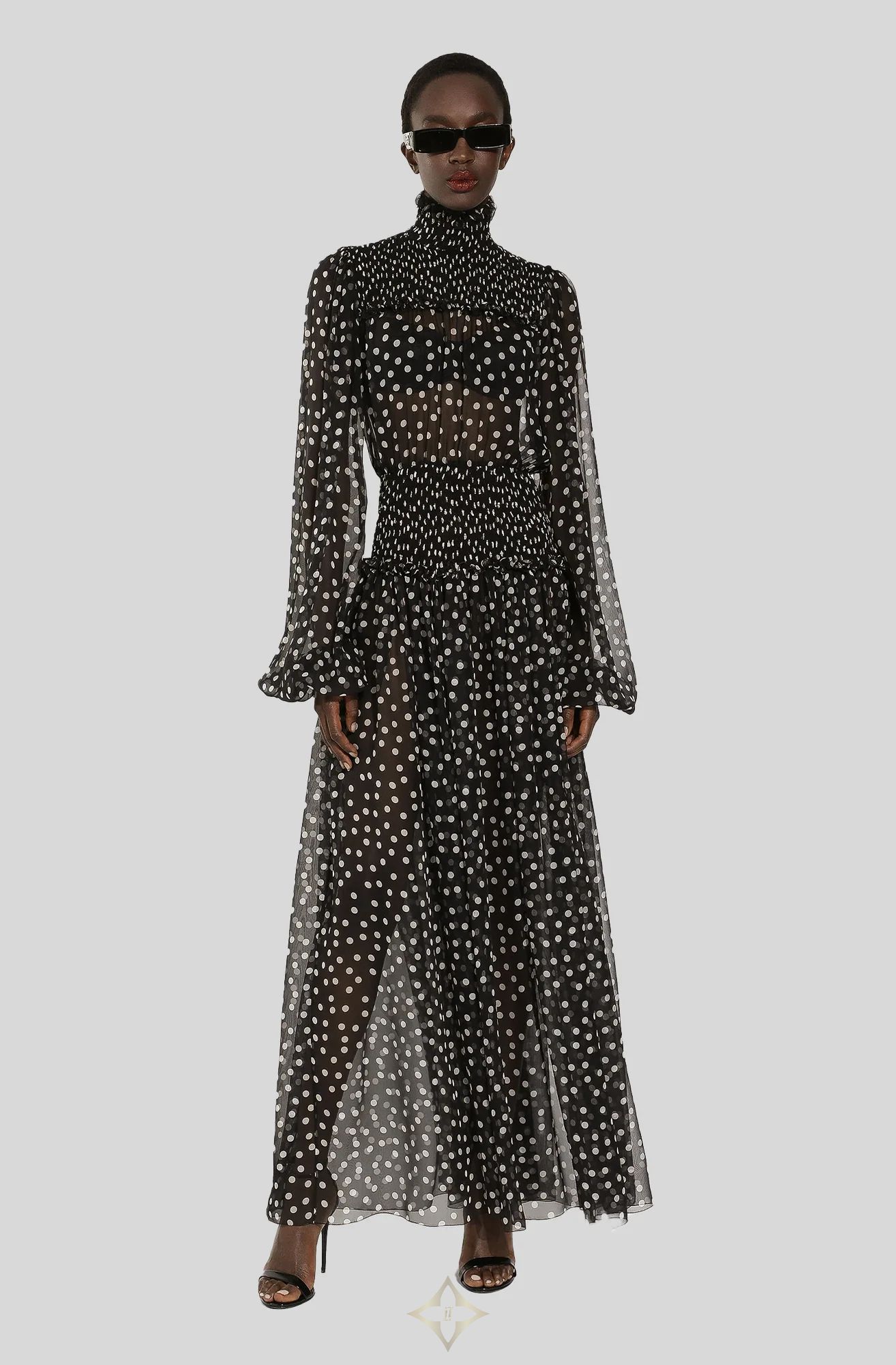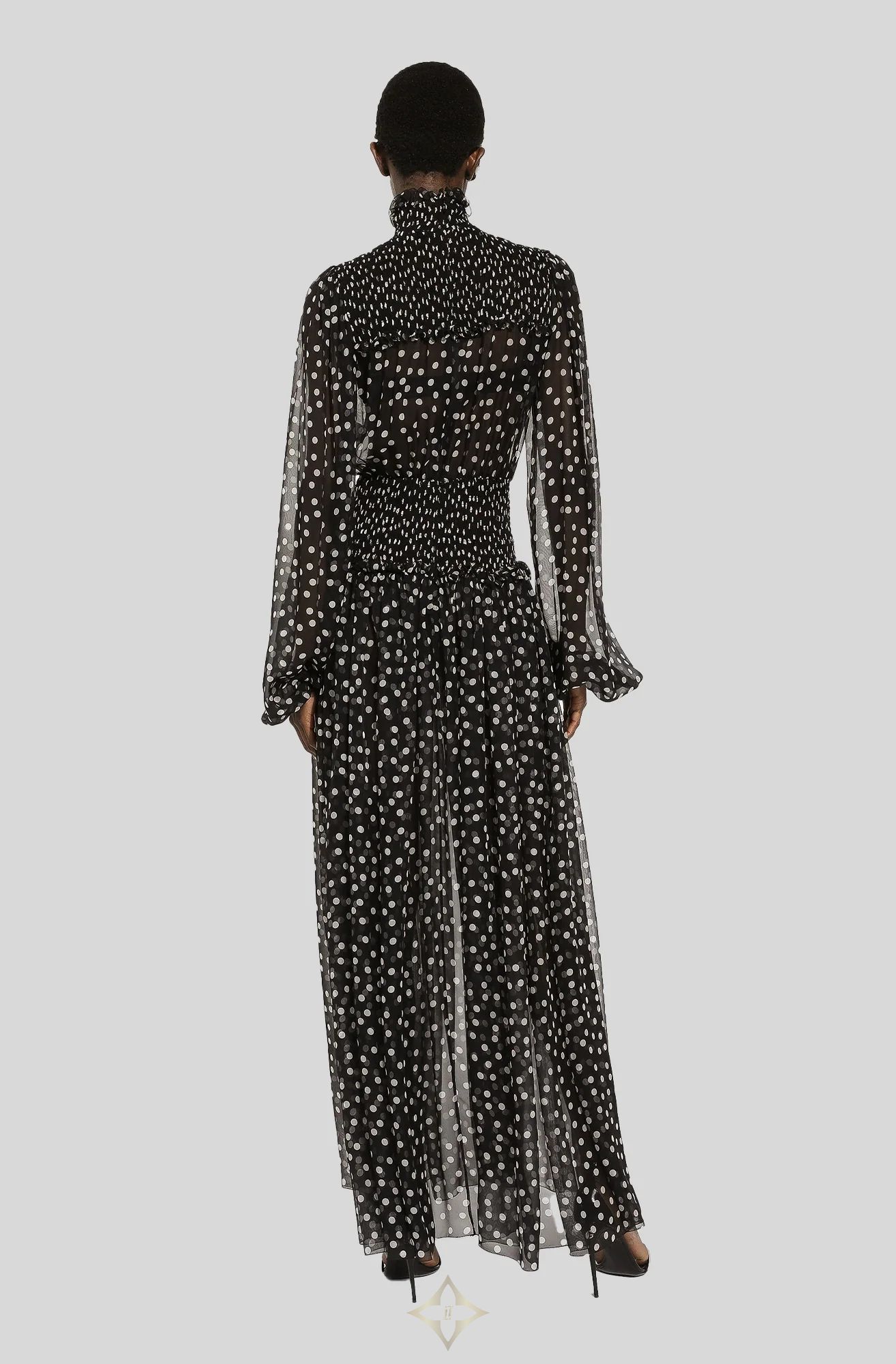DOLCE & GABBANA CHIFFON MIDI DRESS WITH SMOCK STITCHING AND MICRO-POLKA DOT PRINT | Nedlands, WA 🇦🇺