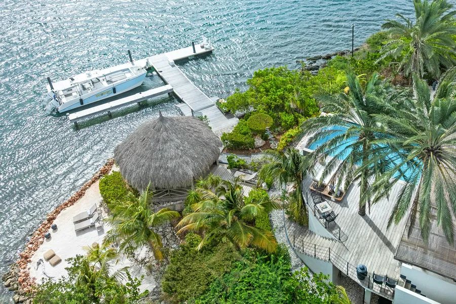 Freedom and Privacy on Your Own Beach At the same time, the palapa and the private pier, one level lower and accessible via stairs on both sides of the terrace, come into view. Under the palapa, you can enjoy the sea and the phenomenal view while shaded from the sun. Unless you prefer to feel the Caribbean sun on your skin at the unmistakably unique private beach. The sandy beach was created a few years ago, as was the dock. From the villa, you can take your boat out on the water, a sublime addition to a luxurious lifestyle.